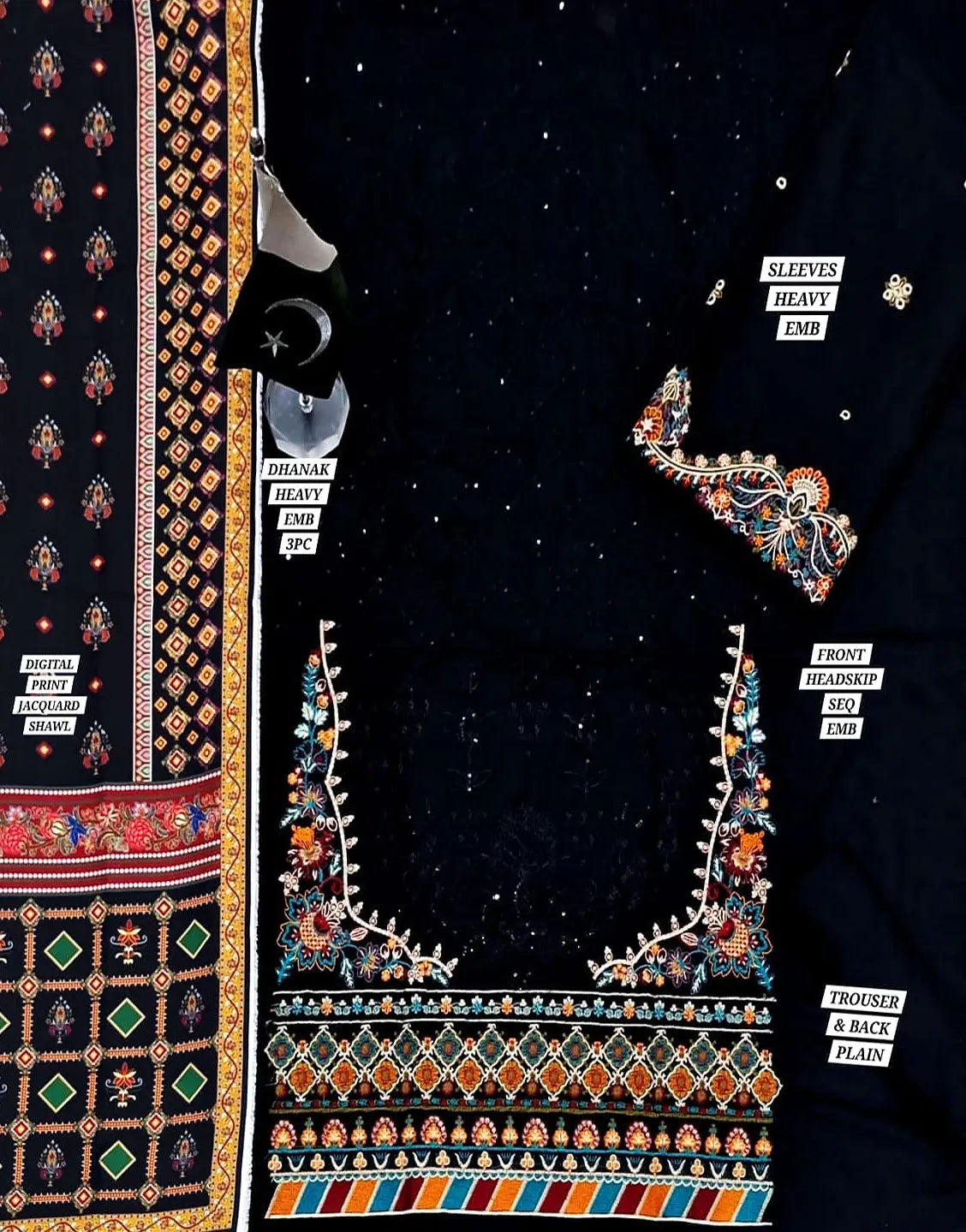 DressyZone.com offers best Fancy Heavy Embroidered Black Dhanak Dress for Winter (DZ18259) price in Pakistan with fast shipping countrywide. Buy Fancy Heavy Embroidered Black Dhanak Dress for Winter (DZ18259) online and pay cash at the time of order delivery with Free Shipping on all orders over Rs.10,000 in all major cities of Pakistan including Karachi, Lahore, Islamabad, Rawalpindi, Faisalabad, Sialkot, Hyderabad, Peshawar, Quetta and more.