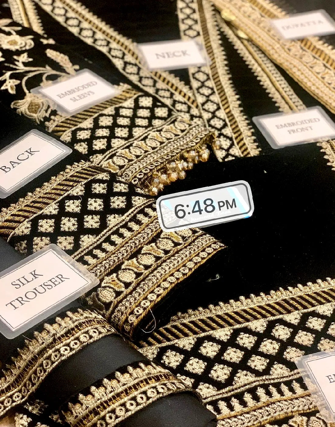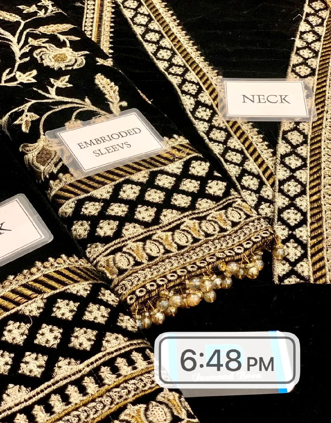 - Sleeves: Embroidered Velvet Sleeves with Patches