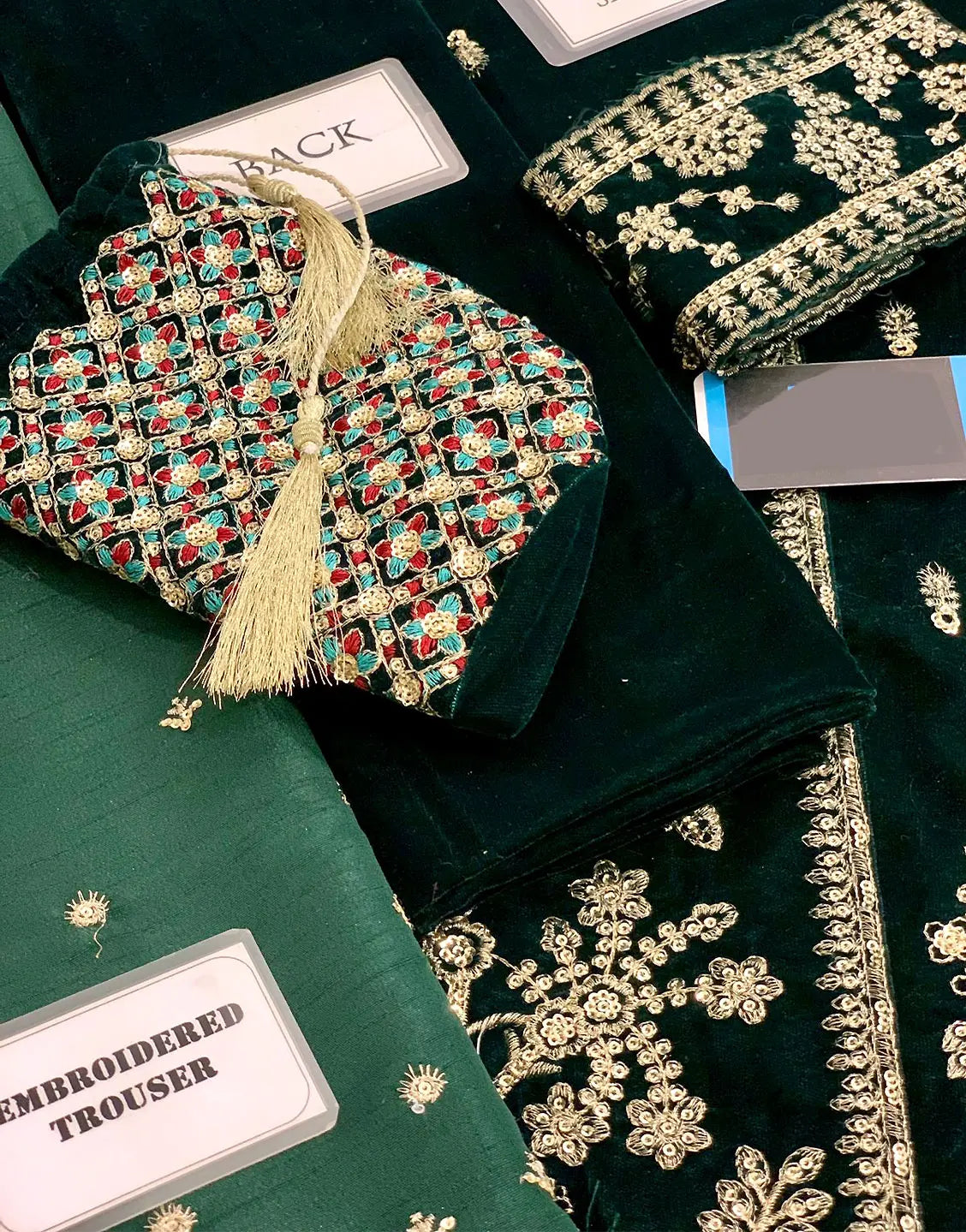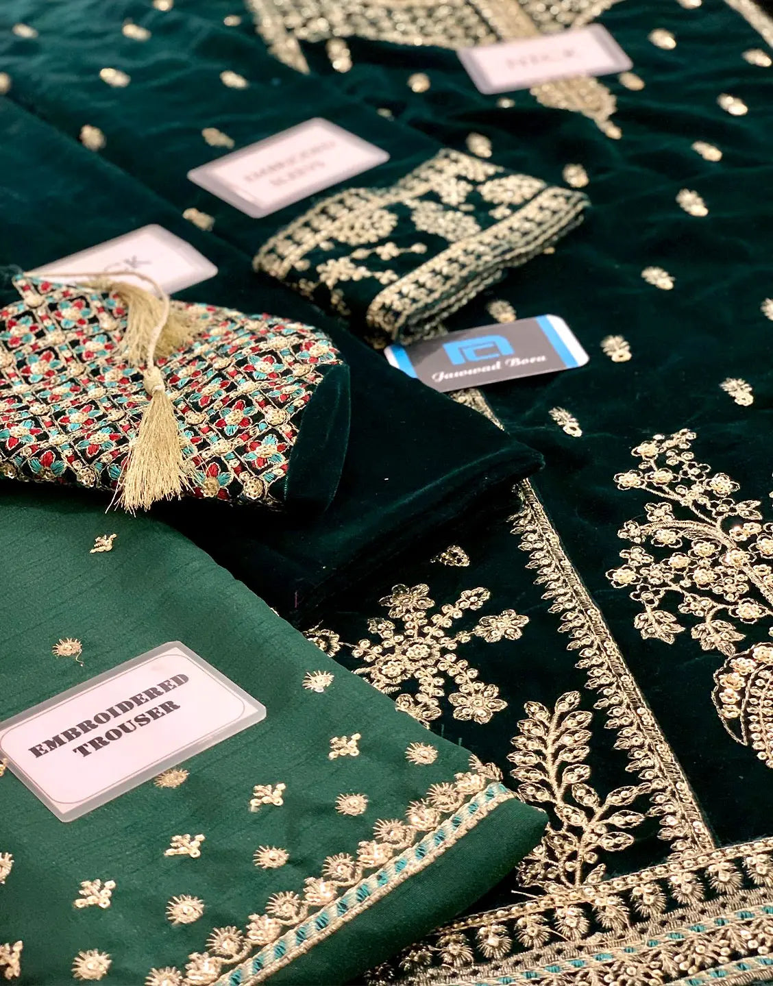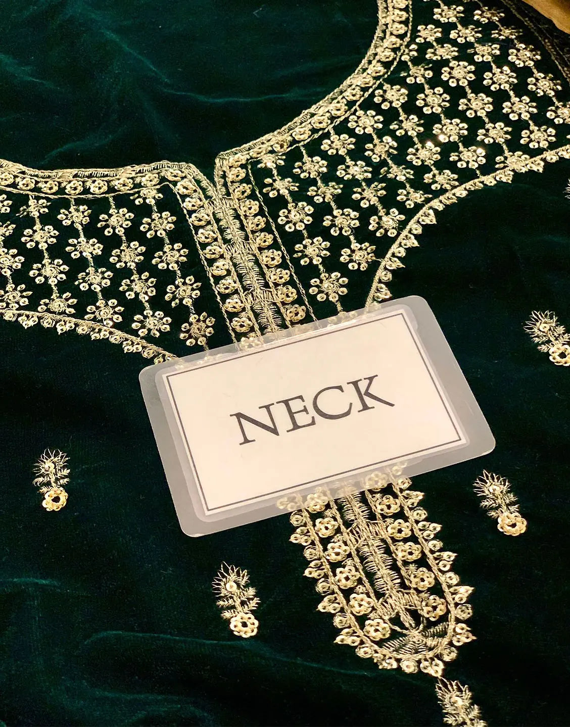 DressyZone.com offers best Luxe Embroidered Bottle Green Velvet Dress for Wedding & Party (DZ18253) price in Pakistan with fast shipping countrywide. Buy Luxe Embroidered Bottle Green Velvet Dress for Wedding & Party (DZ18253) online and pay cash at the time of order delivery with Free Shipping on all orders over Rs.10,000 in all major cities of Pakistan including Karachi, Lahore, Islamabad, Rawalpindi, Faisalabad, Sialkot, Hyderabad, Peshawar, Quetta and more.
