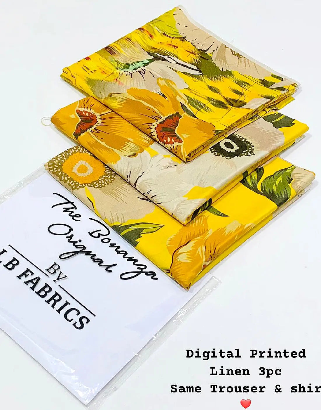 IB Bonanza All-Over Digital Print 3-Piece Linen Dress for Winter Season (DZ18429)