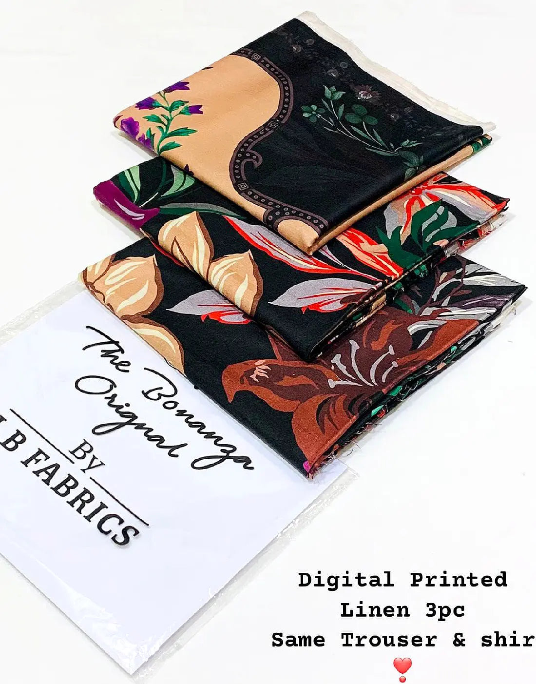 IB Bonanza All-Over Digital Print 3-Piece Linen Dress with Linen Dupatta (DZ18432)
