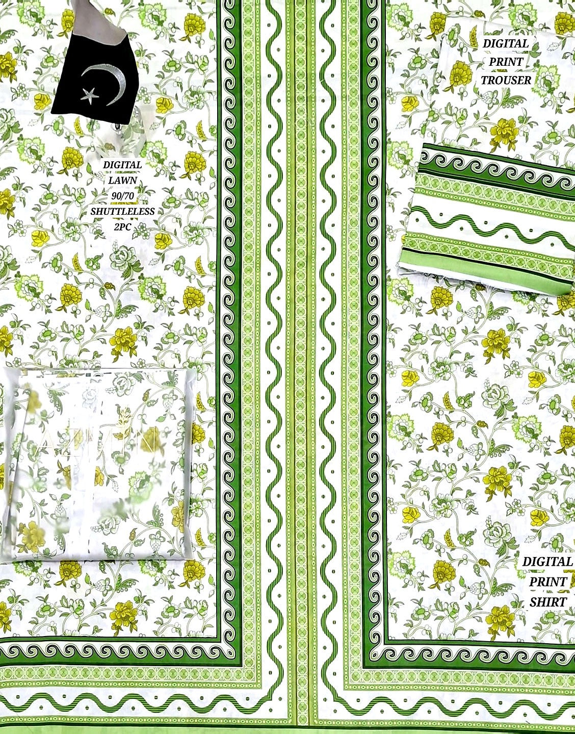 Trendy 2-Piece Digital Print Shuttless Lawn Dress with Printed Trouser (DZ17885)