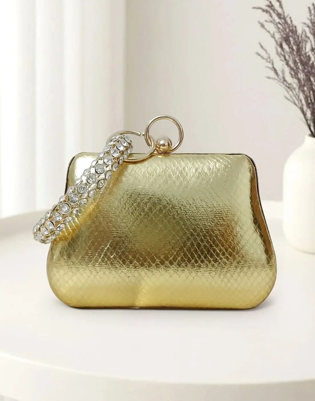 Glam Shine Trapezoid Shape Golden Clutch Bag for Weddings & Events (DZ18342)