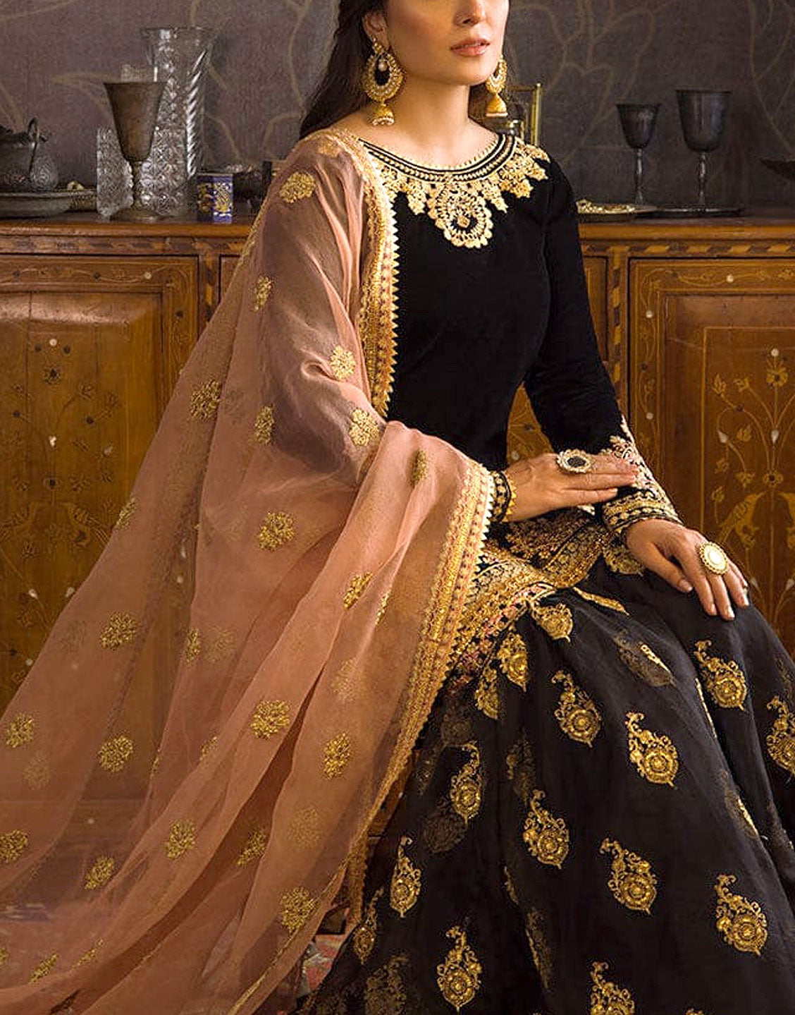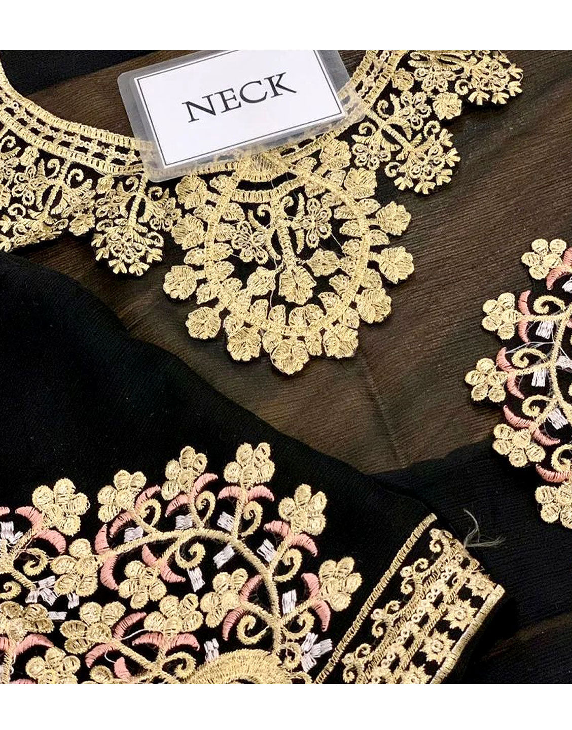 Embroidered Black Chiffon Party Wear Dress with Organza Dupatta (DZ14563)