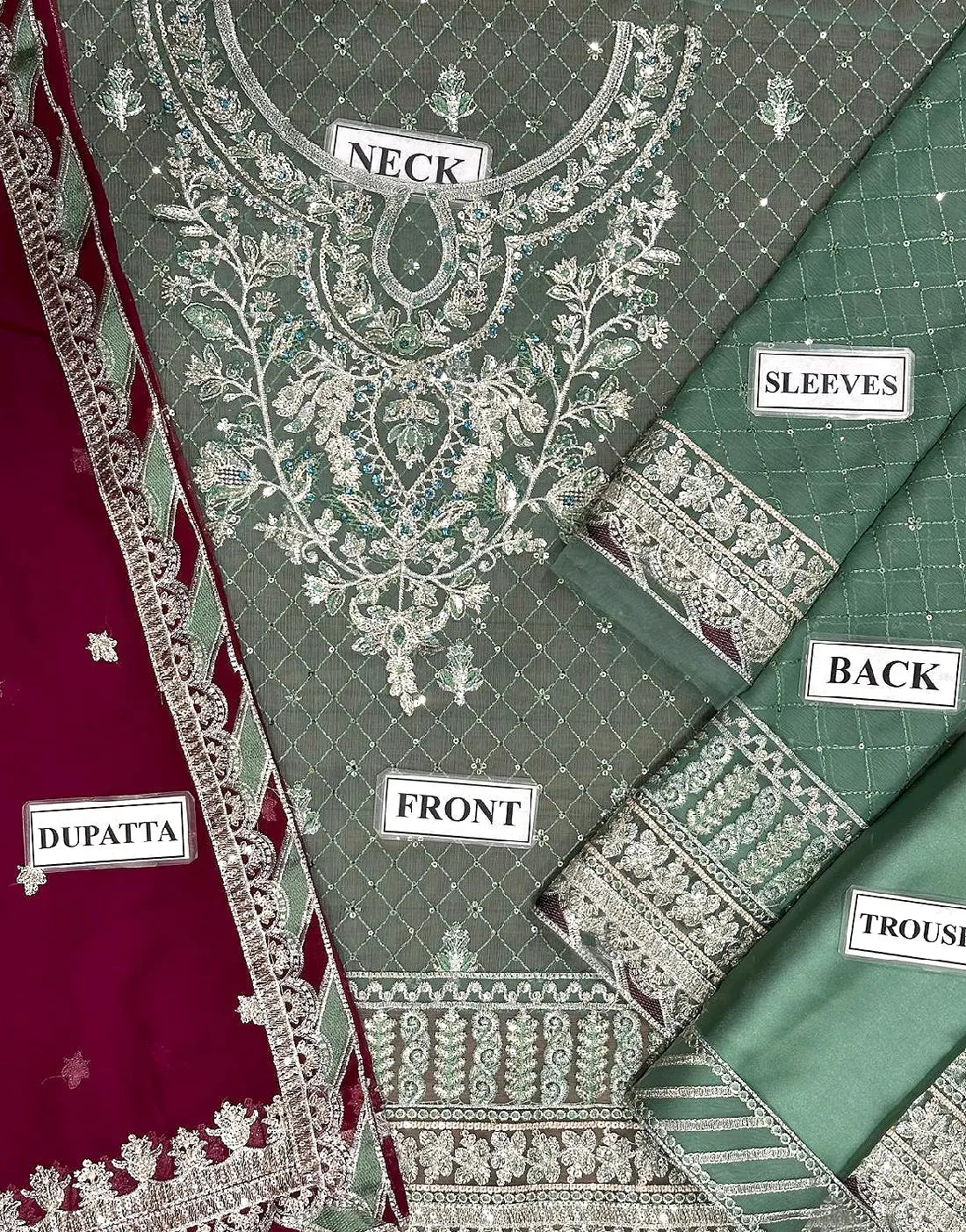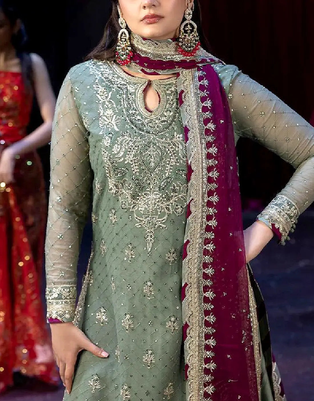 Premium Heavy Embroidered Chiffon Dress – Perfect for Wedding & Formal Events (DZ18412)