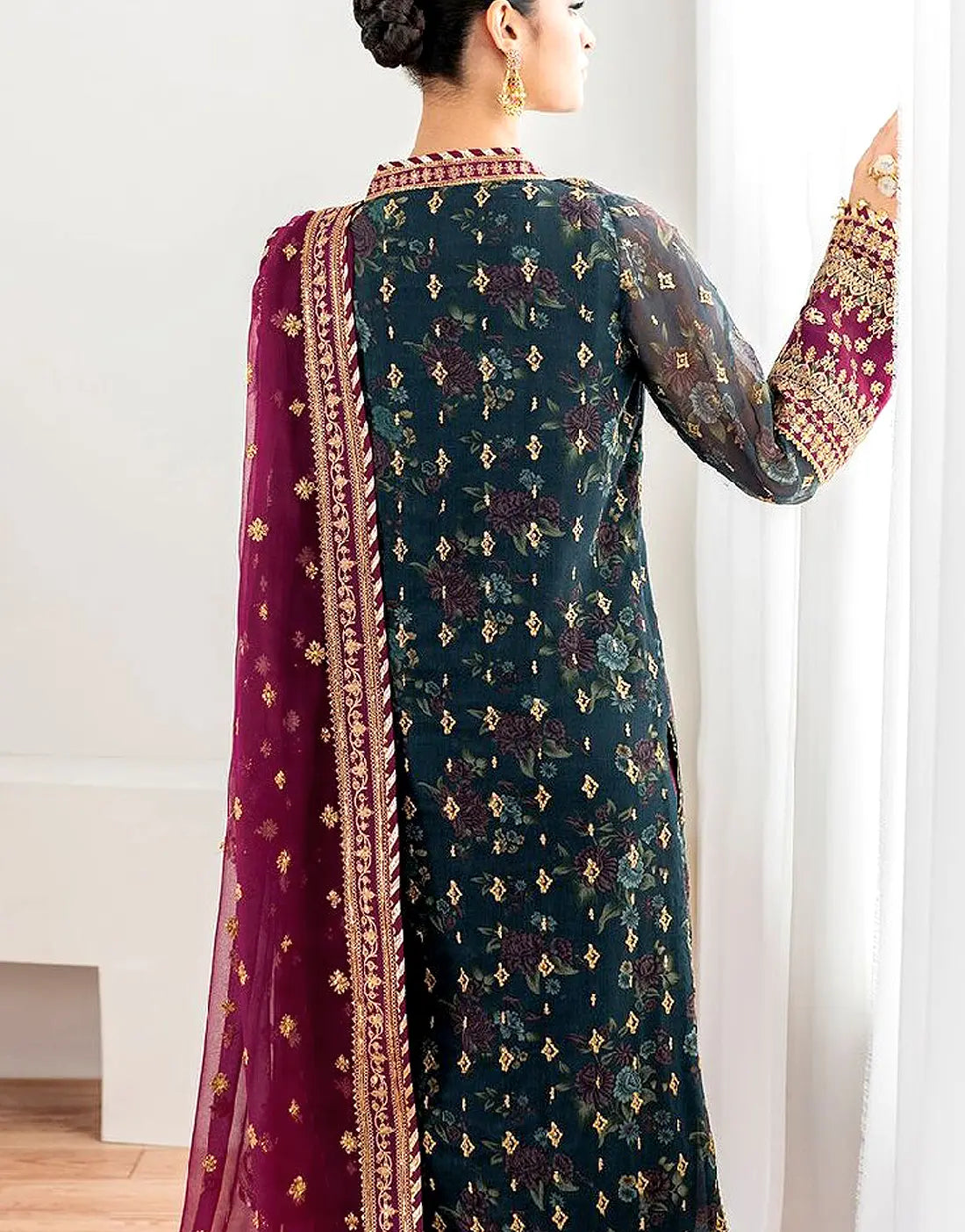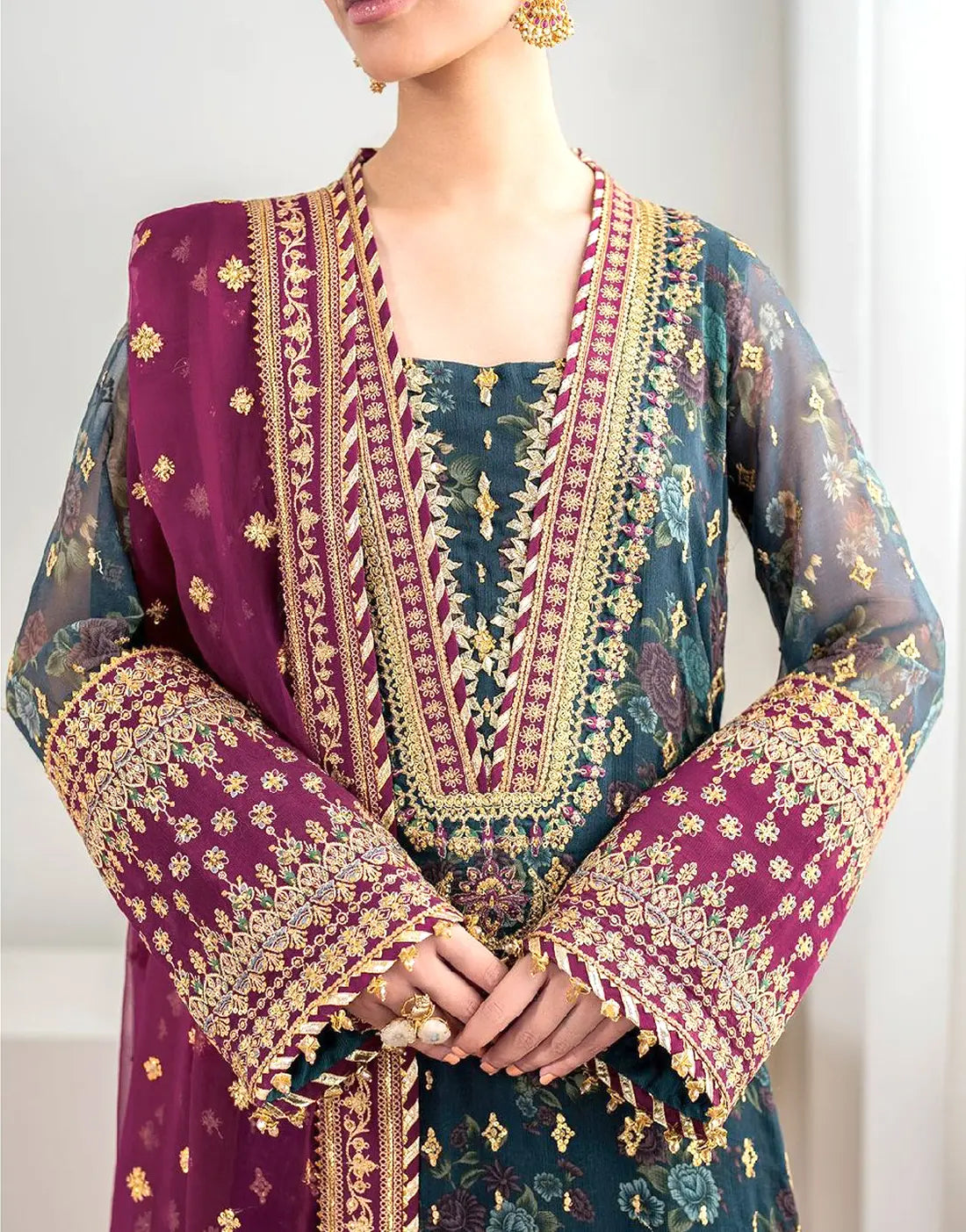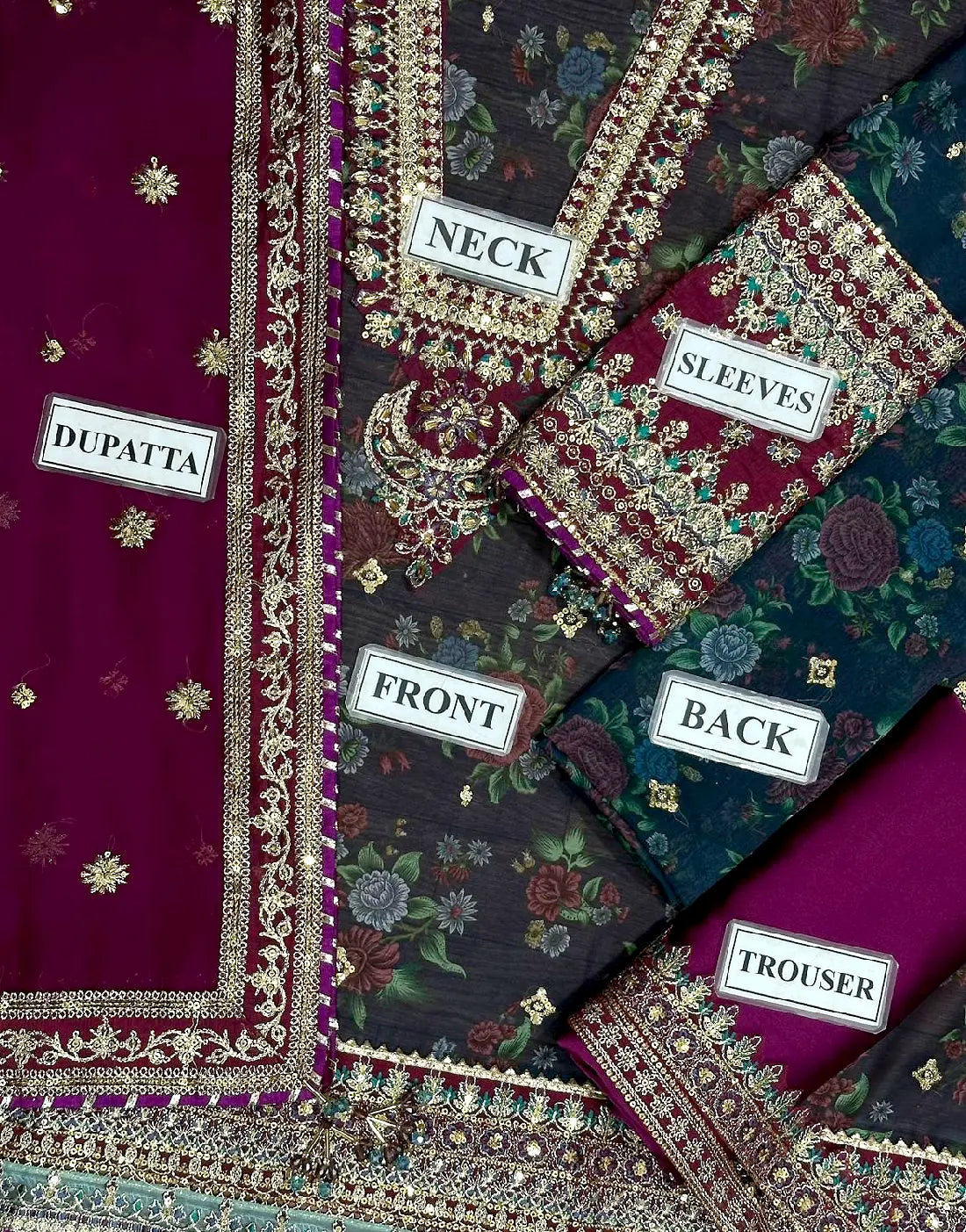 Luxurious Heavy Embroidered Chiffon Dress for Bridal & Wedding Events (DZ18418)