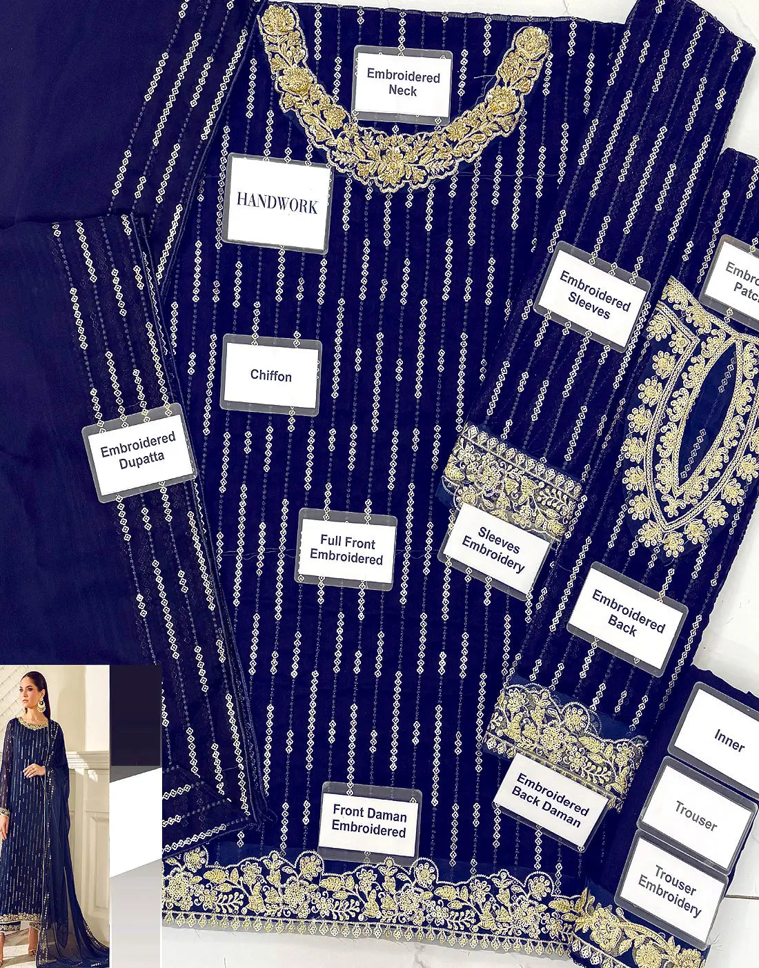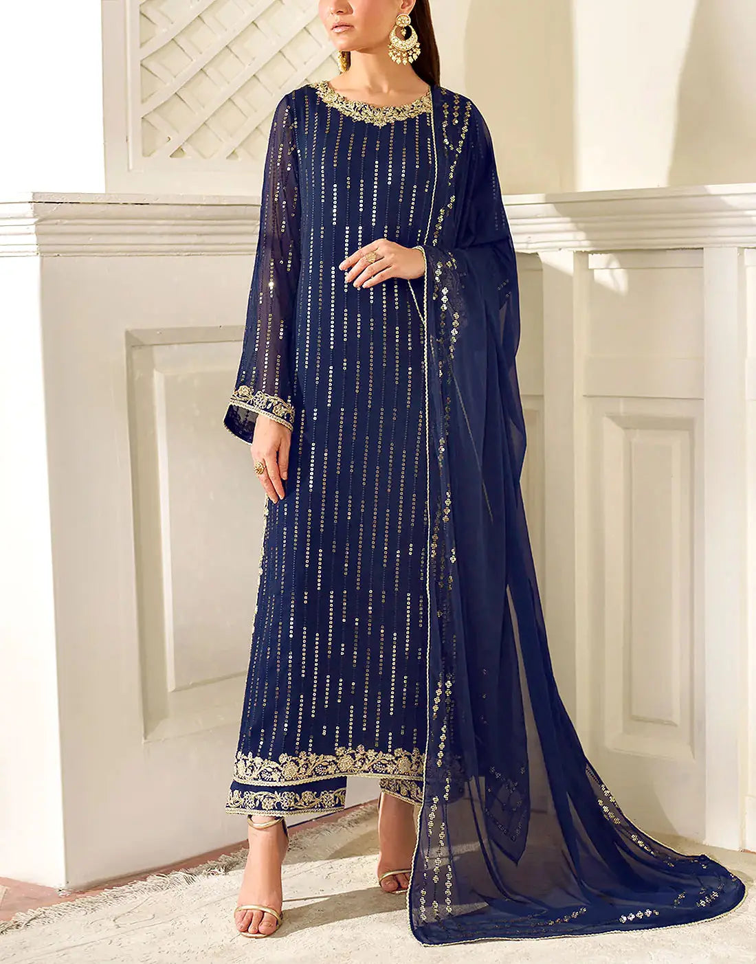 DressyZone.com offers best Glamorous Embroidered Navy Blue Chiffon Wedding Wear Dress (DZ18870) price in Pakistan with fast shipping countrywide. Buy Glamorous Embroidered Navy Blue Chiffon Wedding Wear Dress (DZ18870) online and pay cash at the time of order delivery with Free Shipping on all orders over Rs.10,000 in all major cities of Pakistan including Karachi, Lahore, Islamabad, Rawalpindi, Faisalabad, Sialkot, Hyderabad, Peshawar, Quetta and more.