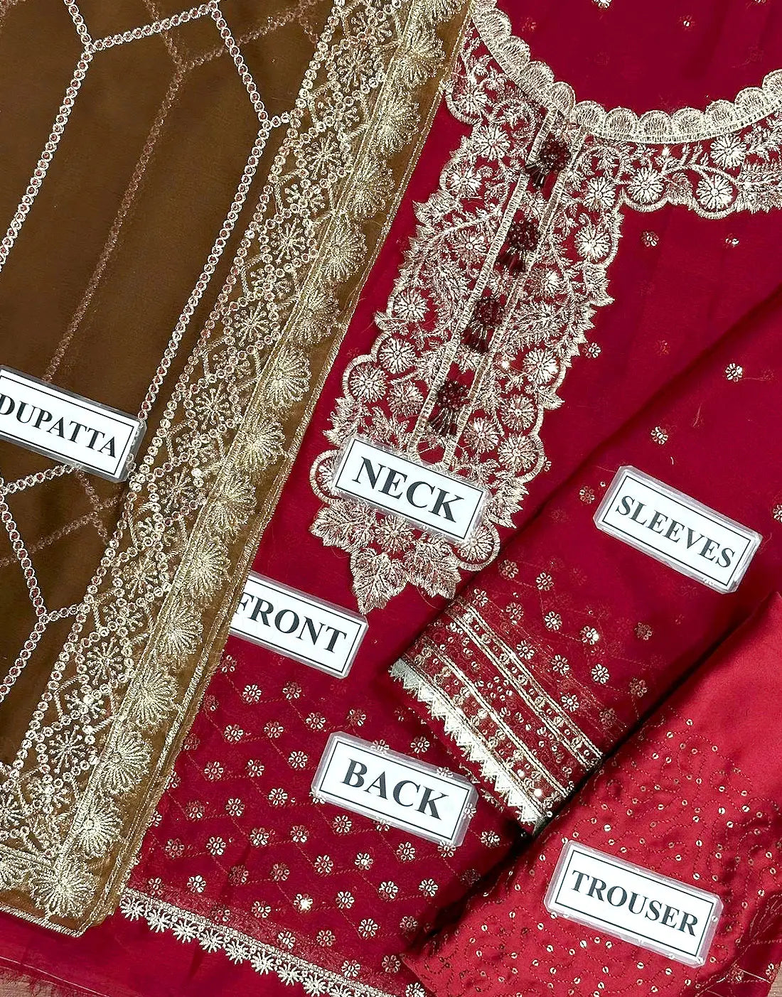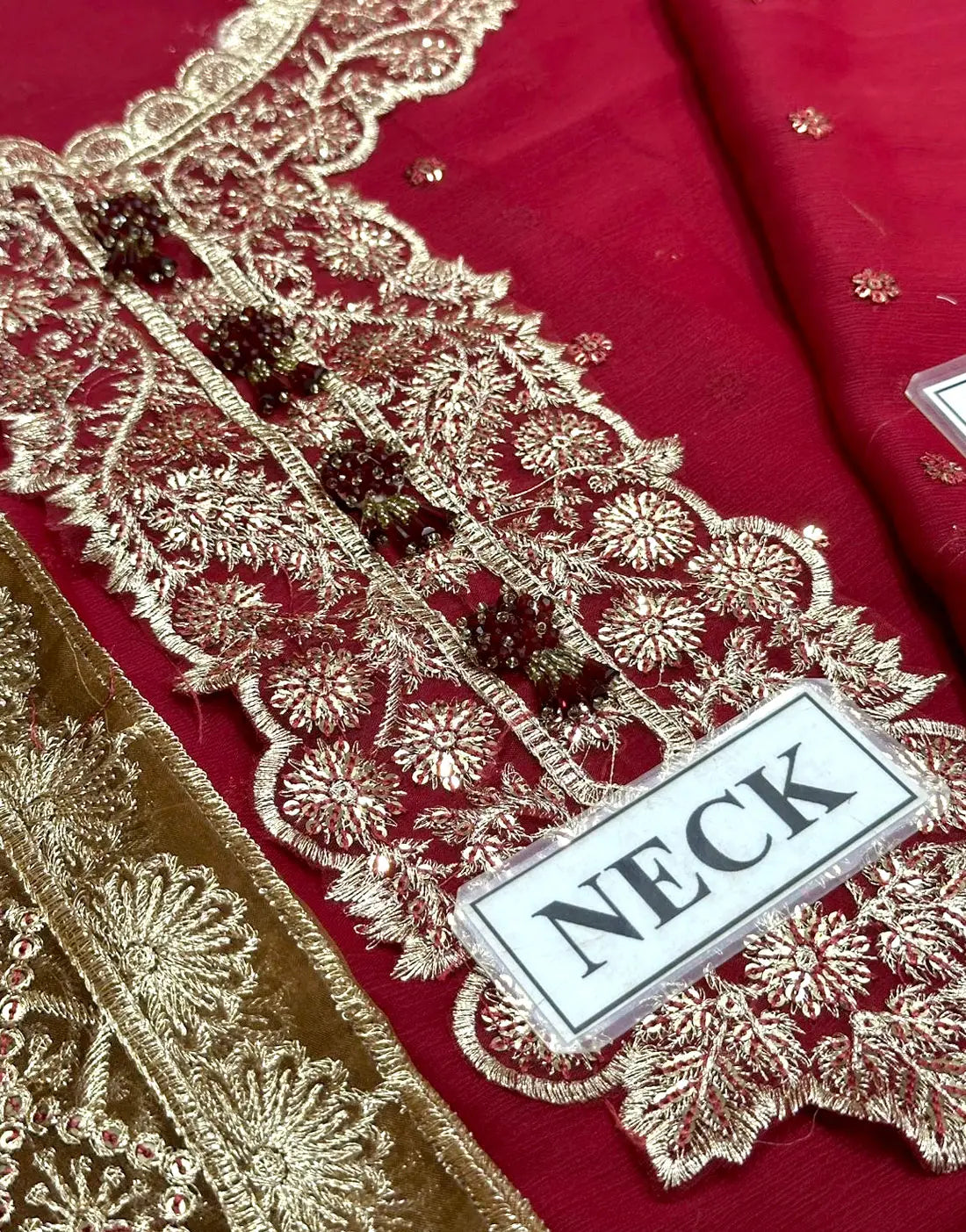DressyZone.com offers best Embroidered Deep Red Chiffon Wedding Dress with Emb. Silk Trouser (DZ18621) price in Pakistan with fast shipping countrywide. Buy Embroidered Deep Red Chiffon Wedding Dress with Emb. Silk Trouser (DZ18621) online and pay cash at the time of order delivery with Free Shipping on all orders over Rs.10,000 in all major cities of Pakistan including Karachi, Lahore, Islamabad, Rawalpindi, Faisalabad, Sialkot, Hyderabad, Peshawar, Quetta and more.