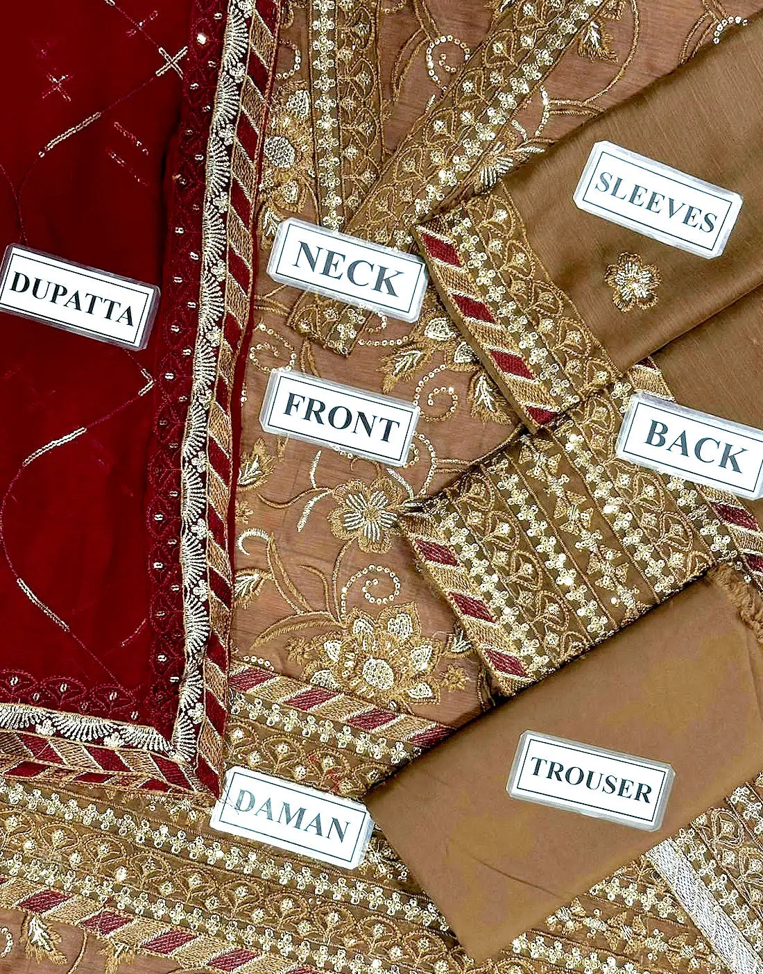 - Embroidered Front & Back Daman
