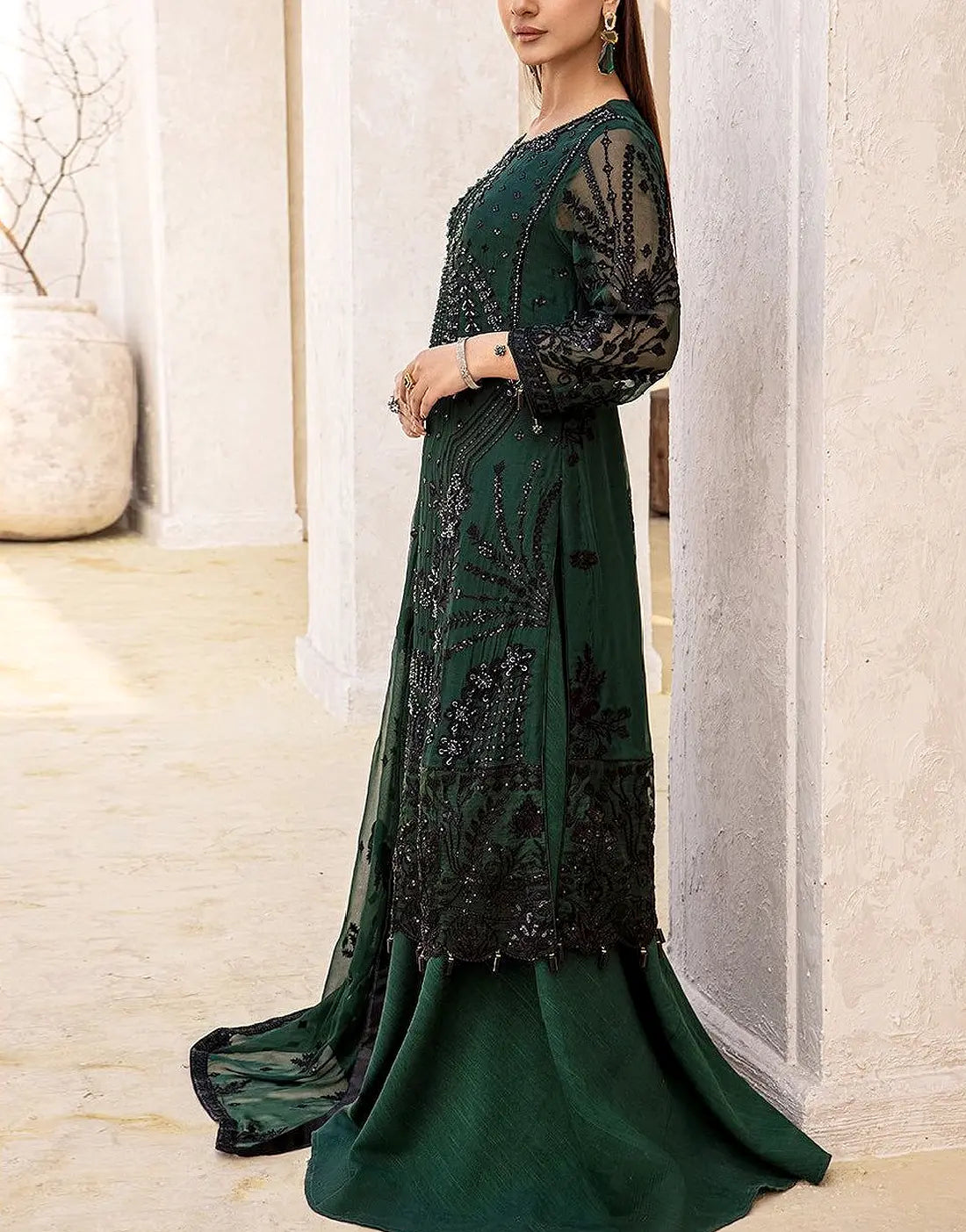 DressyZone.com offers best Glamorous Handwork Embroidered Bottle Green Chiffon Wedding Dress (DZ18426) price in Pakistan with fast shipping countrywide. Buy Glamorous Handwork Embroidered Bottle Green Chiffon Wedding Dress (DZ18426) online and pay cash at the time of order delivery with Free Shipping on all orders over Rs.10,000 in all major cities of Pakistan including Karachi, Lahore, Islamabad, Rawalpindi, Faisalabad, Sialkot, Hyderabad, Peshawar, Quetta and more.