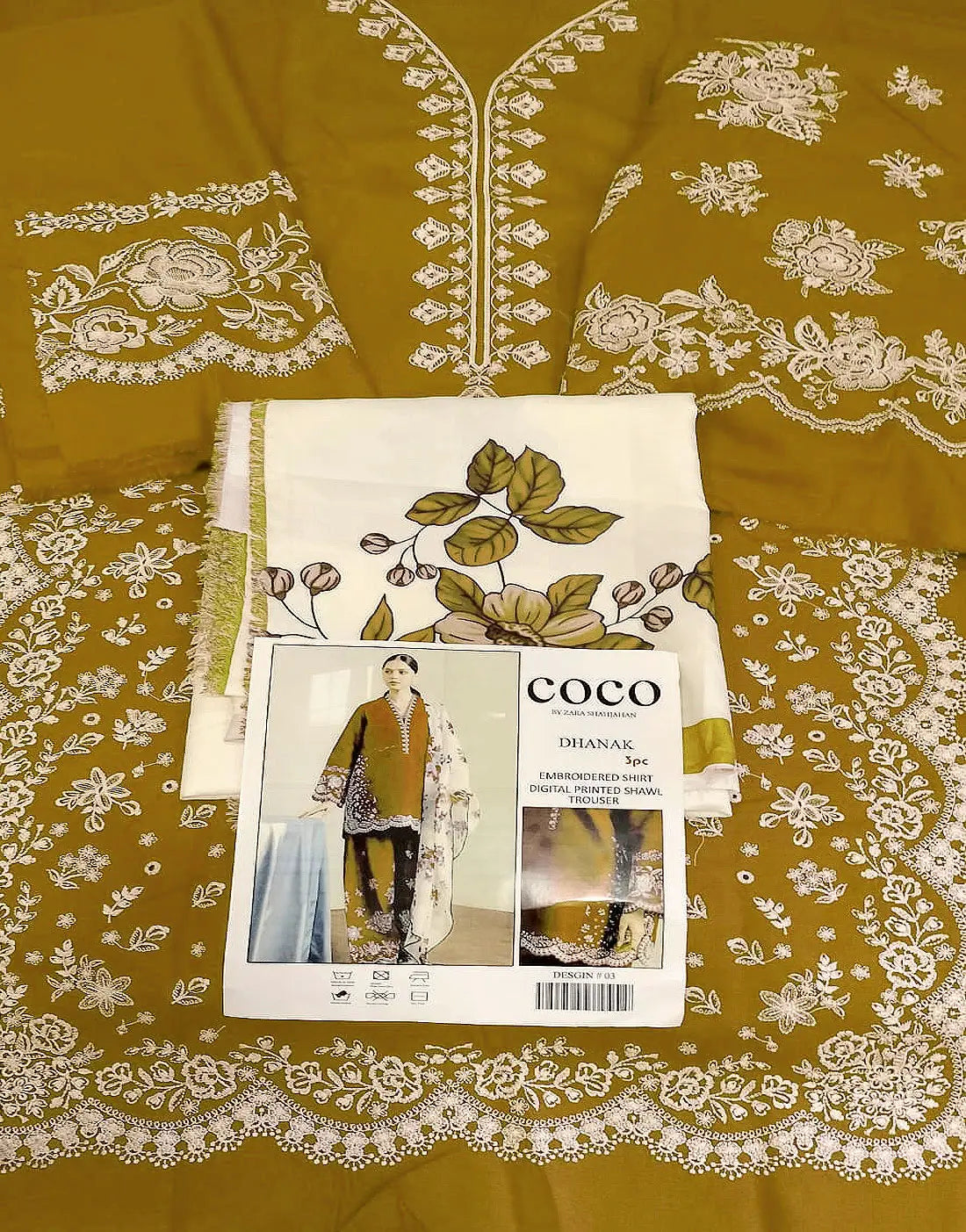 DressyZone.com offers best Most Demanding Embroidered Mustard Dhanak Dress with Embroidered Bottoms (DZ18588) price in Pakistan with fast shipping countrywide. Buy Most Demanding Embroidered Mustard Dhanak Dress with Embroidered Bottoms (DZ18588) online and pay cash at the time of order delivery with Free Shipping on all orders over Rs.10,000 in all major cities of Pakistan including Karachi, Lahore, Islamabad, Rawalpindi, Faisalabad, Sialkot, Hyderabad, Peshawar, Quetta and more.