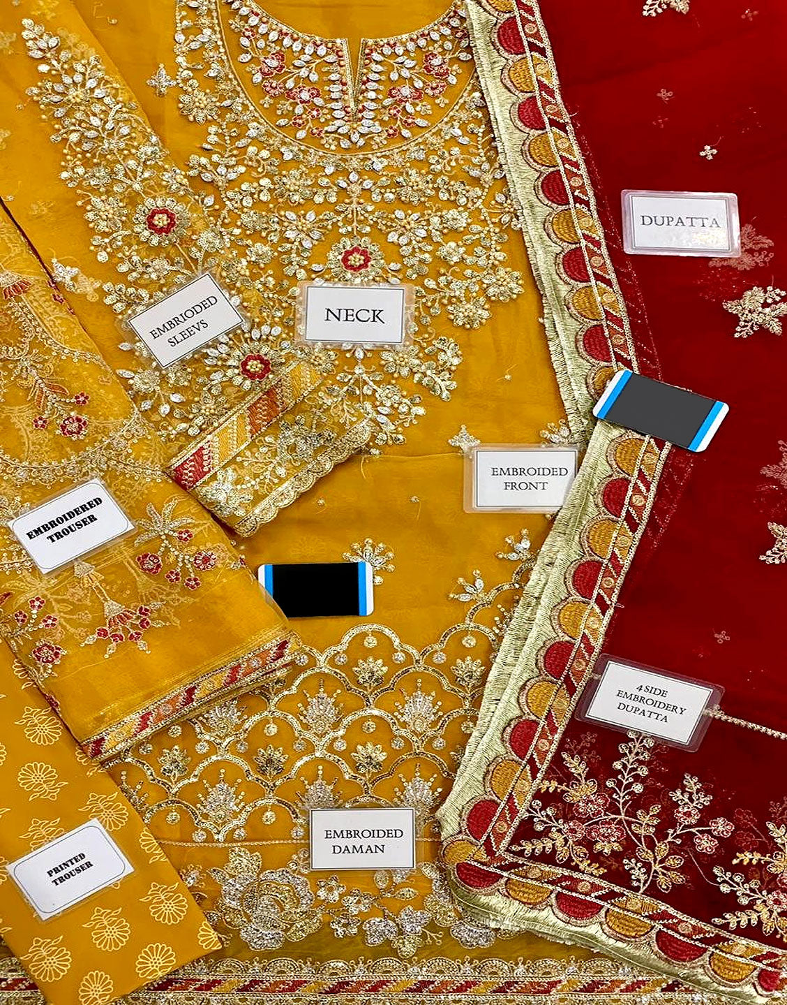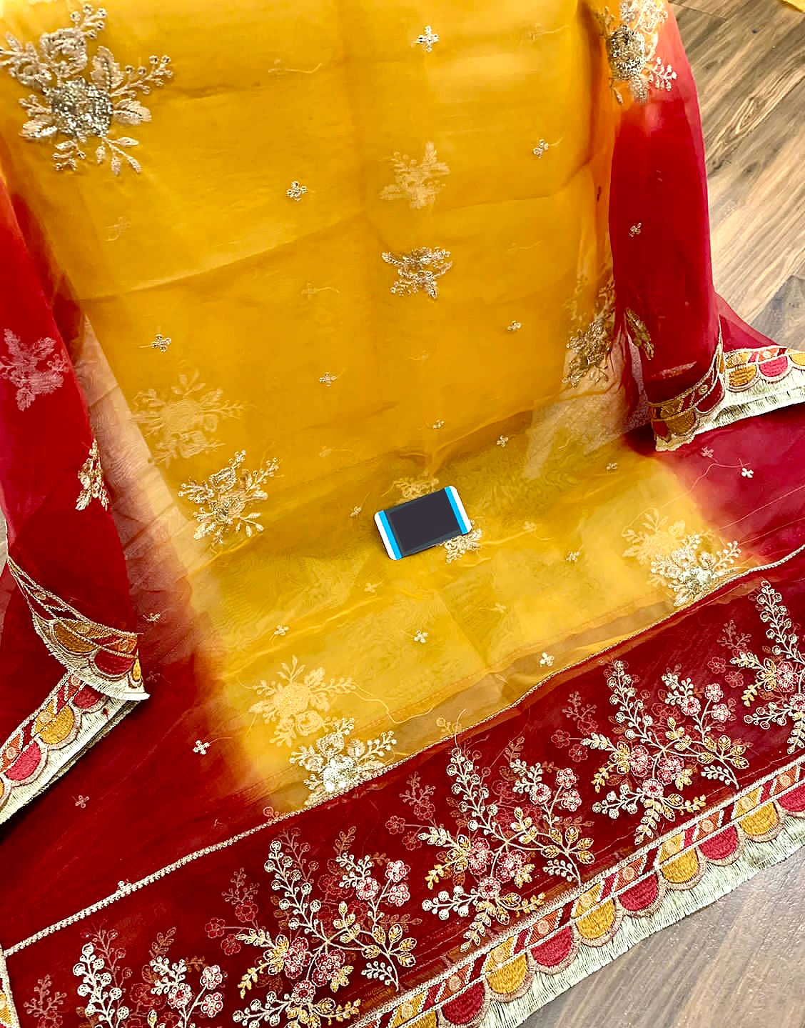 - 4 Sider Heavy Border Embroidered Double Shade Organza Dupatta
