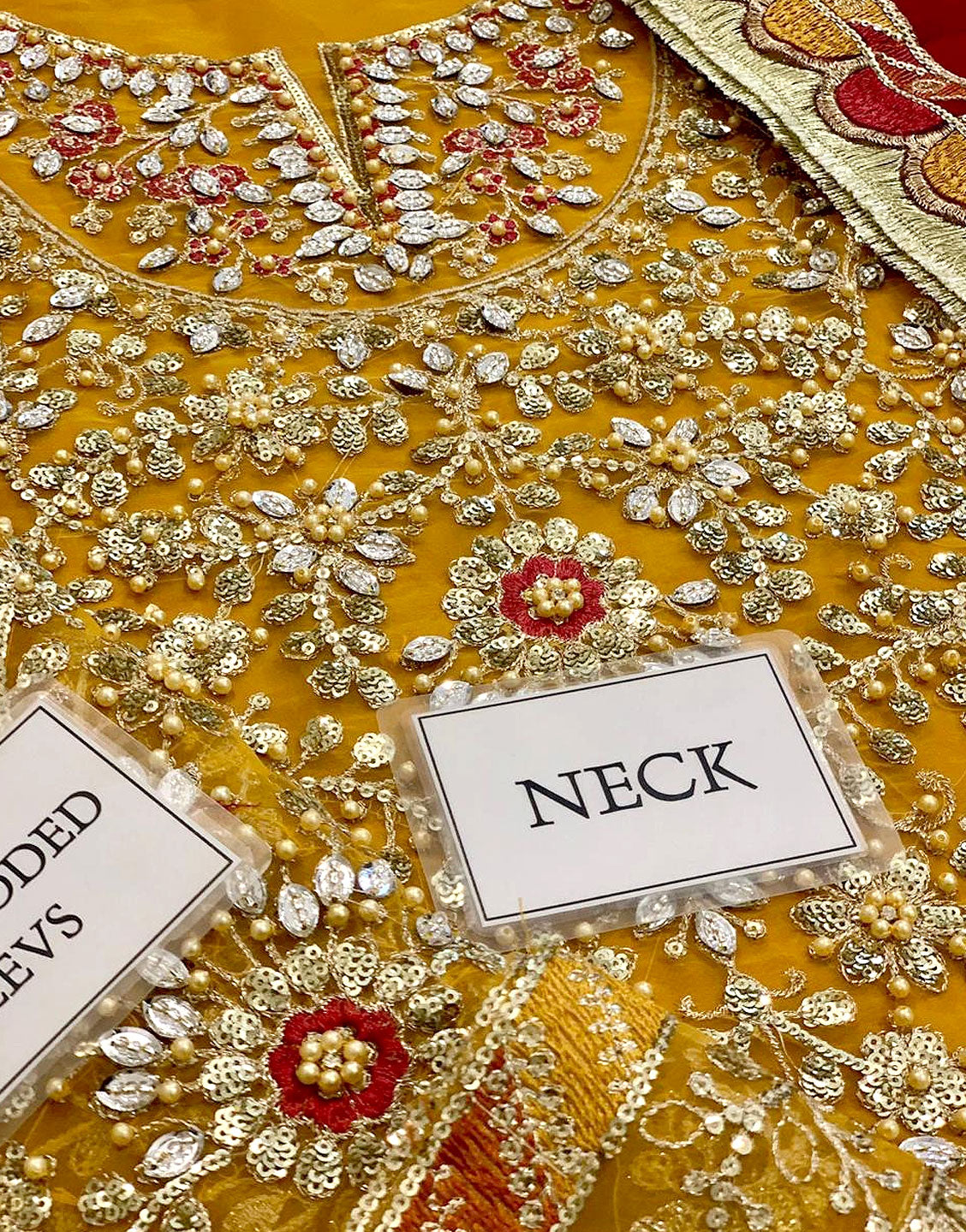 - Handwork Heavy Embroidered Organza Sleeves with Patches