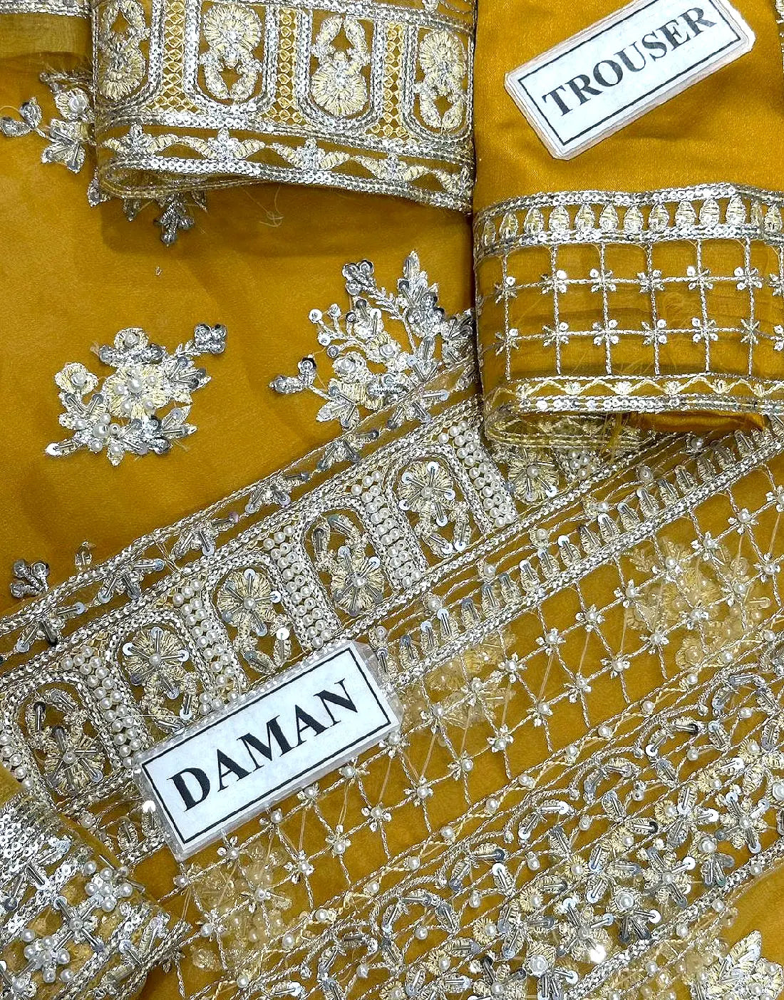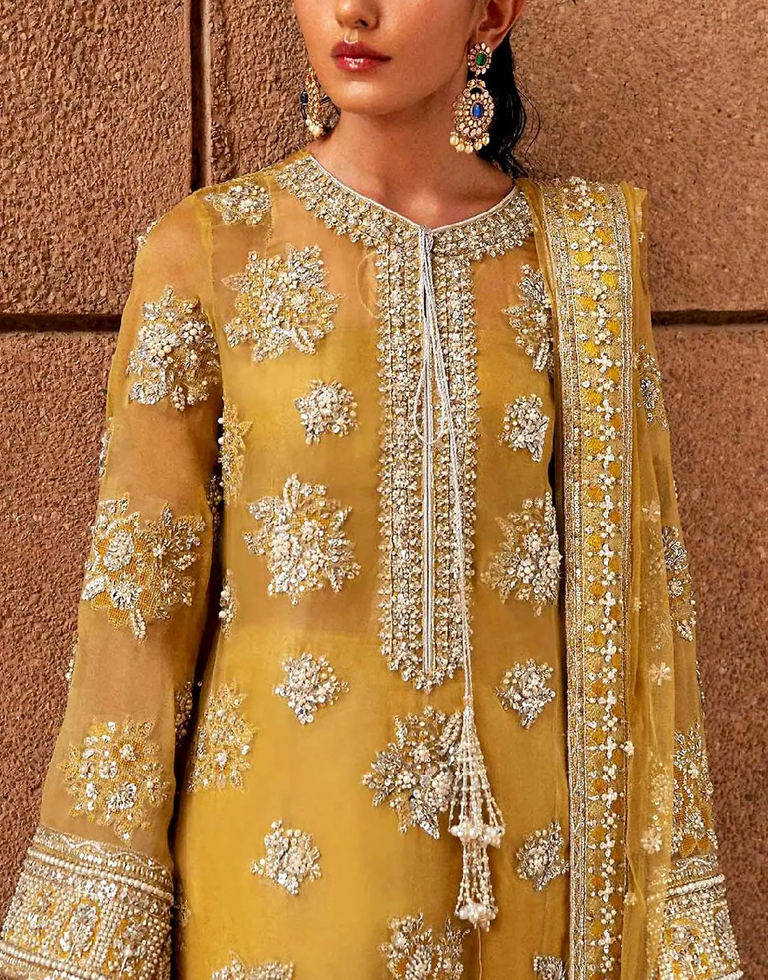 Luxurious Handwork Embroidered Organza Bridal Dress - Ideal for Mehndi Event (DZ18427)