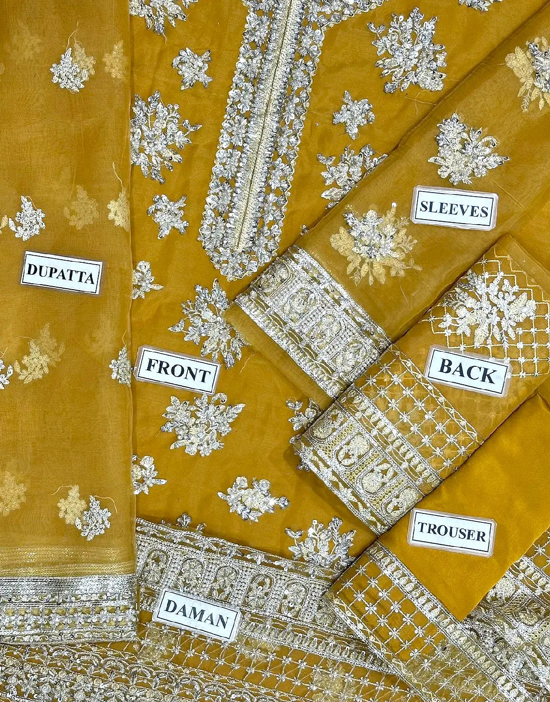 DressyZone.com offers best Luxurious Handwork Embroidered Organza Bridal Dress - Ideal for Mehndi Event (DZ18427) price in Pakistan with fast shipping countrywide. Buy Luxurious Handwork Embroidered Organza Bridal Dress - Ideal for Mehndi Event (DZ18427) online and pay cash at the time of order delivery with Free Shipping on all orders over Rs.10,000 in all major cities of Pakistan including Karachi, Lahore, Islamabad, Rawalpindi, Faisalabad, Sialkot, Hyderabad, Peshawar, Quetta and more.