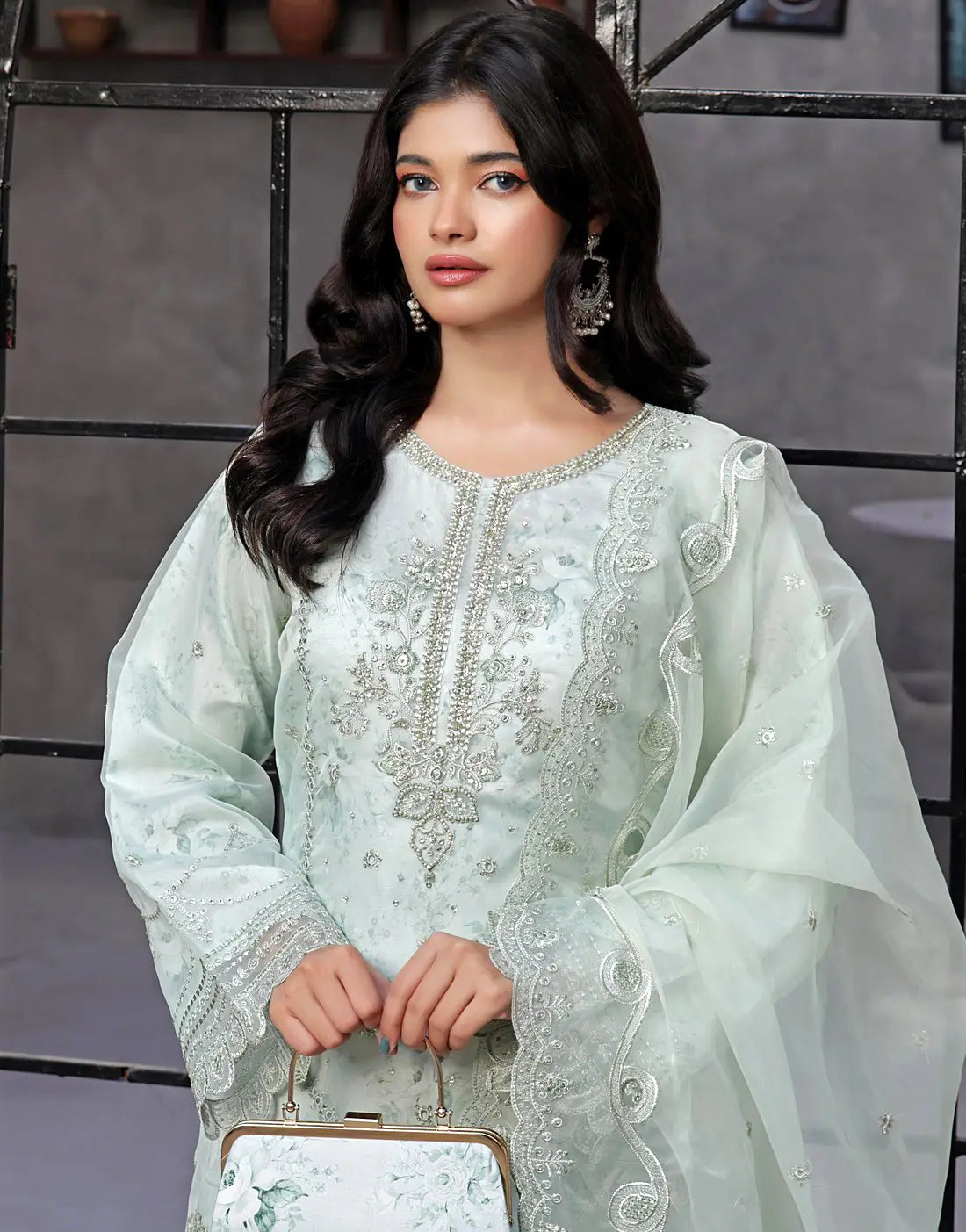 DressyZone.com offers best Naaira Semi-Stitched Embroidered Light Green Organza Party Dress with Complimentary Clutch Bag (DZ18709) price in Pakistan with fast shipping countrywide. Buy Naaira Semi-Stitched Embroidered Light Green Organza Party Dress with Complimentary Clutch Bag (DZ18709) online and pay cash at the time of order delivery with Free Shipping on all orders over Rs.10,000 in all major cities of Pakistan including Karachi, Lahore, Islamabad, Rawalpindi, Faisalabad, Sialkot, Hyderabad, Peshawar, Quetta and more.
