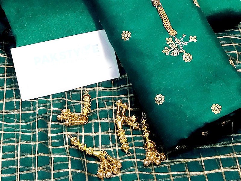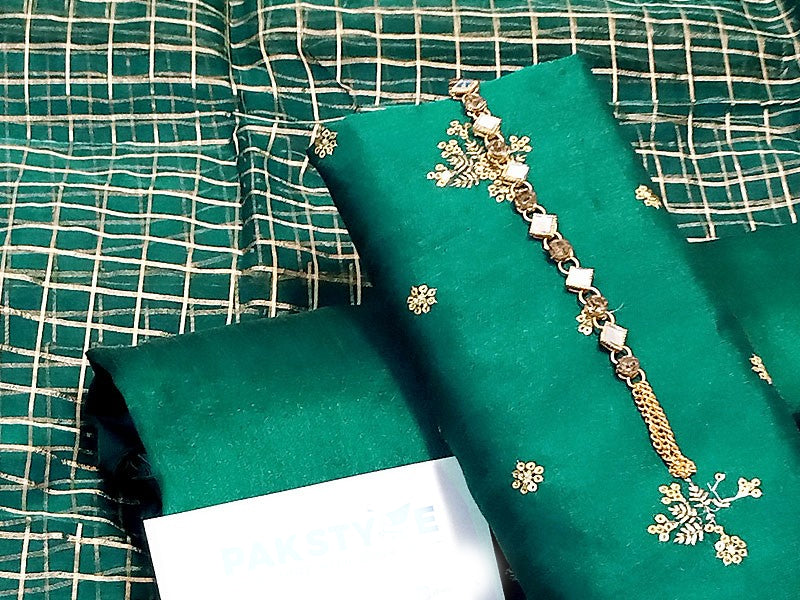DressyZone.com offers best Banarsi Style Embroidered Raw Silk Dress with Organza Check Design Dupatta (DZ15385) price in Pakistan with fast shipping countrywide. Buy Banarsi Style Embroidered Raw Silk Dress with Organza Check Design Dupatta (DZ15385) online and pay cash at the time of order delivery with Free Shipping on all orders over Rs.10,000 in all major cities of Pakistan including Karachi, Lahore, Islamabad, Rawalpindi, Faisalabad, Sialkot, Hyderabad, Peshawar, Quetta and more.