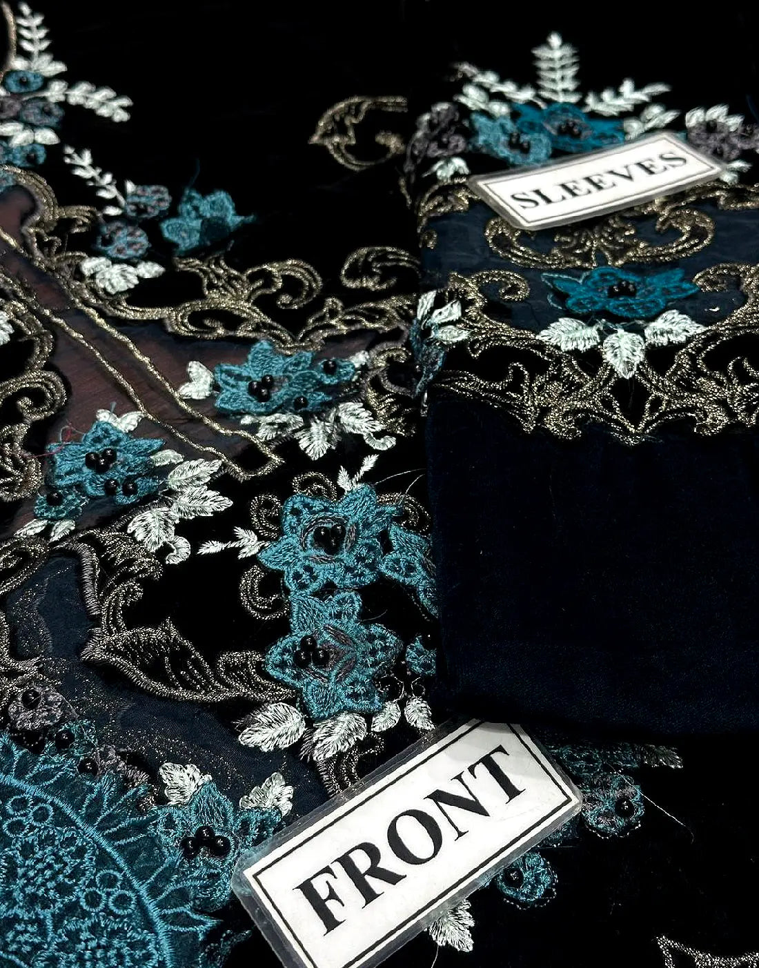 - Dupatta: 4 Side Border Embroidered Velvet Shawl