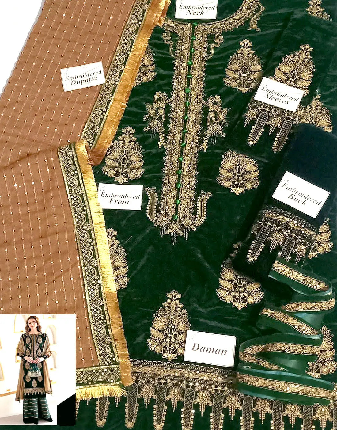 DressyZone.com offers best Heavy Embroidered Bottle Green Velvet Dress for Party Wear & Weddings (DZ18626) price in Pakistan with fast shipping countrywide. Buy Heavy Embroidered Bottle Green Velvet Dress for Party Wear & Weddings (DZ18626) online and pay cash at the time of order delivery with Free Shipping on all orders over Rs.10,000 in all major cities of Pakistan including Karachi, Lahore, Islamabad, Rawalpindi, Faisalabad, Sialkot, Hyderabad, Peshawar, Quetta and more.