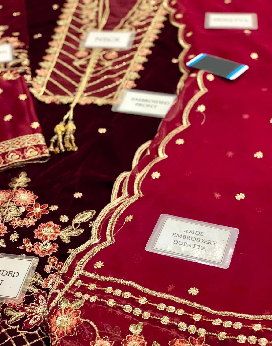 - Embroidered Velvet Front