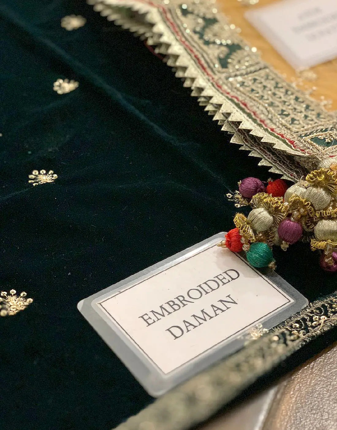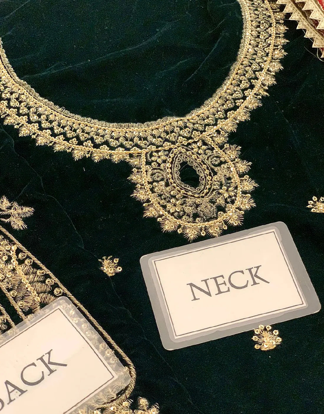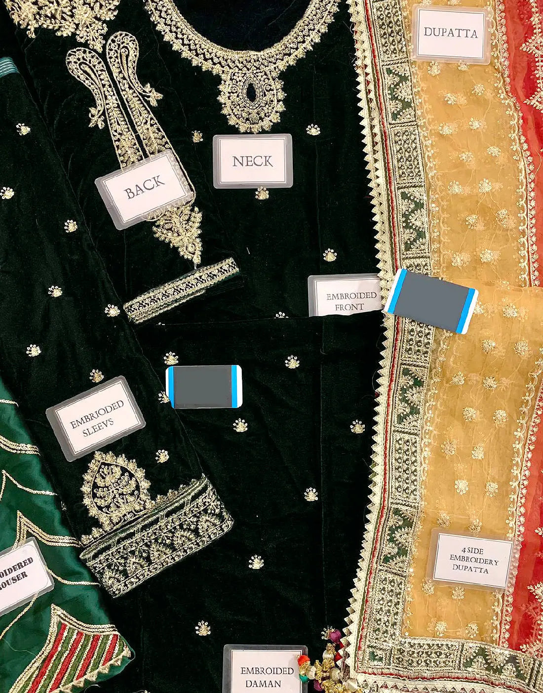 DressyZone.com offers best Glamorous Embroidered Emerald Green Velvet Wedding Dress with Multicolor Organza Dupatta (DZ18448) price in Pakistan with fast shipping countrywide. Buy Glamorous Embroidered Emerald Green Velvet Wedding Dress with Multicolor Organza Dupatta (DZ18448) online and pay cash at the time of order delivery with Free Shipping on all orders over Rs.10,000 in all major cities of Pakistan including Karachi, Lahore, Islamabad, Rawalpindi, Faisalabad, Sialkot, Hyderabad, Peshawar, Quetta and more.