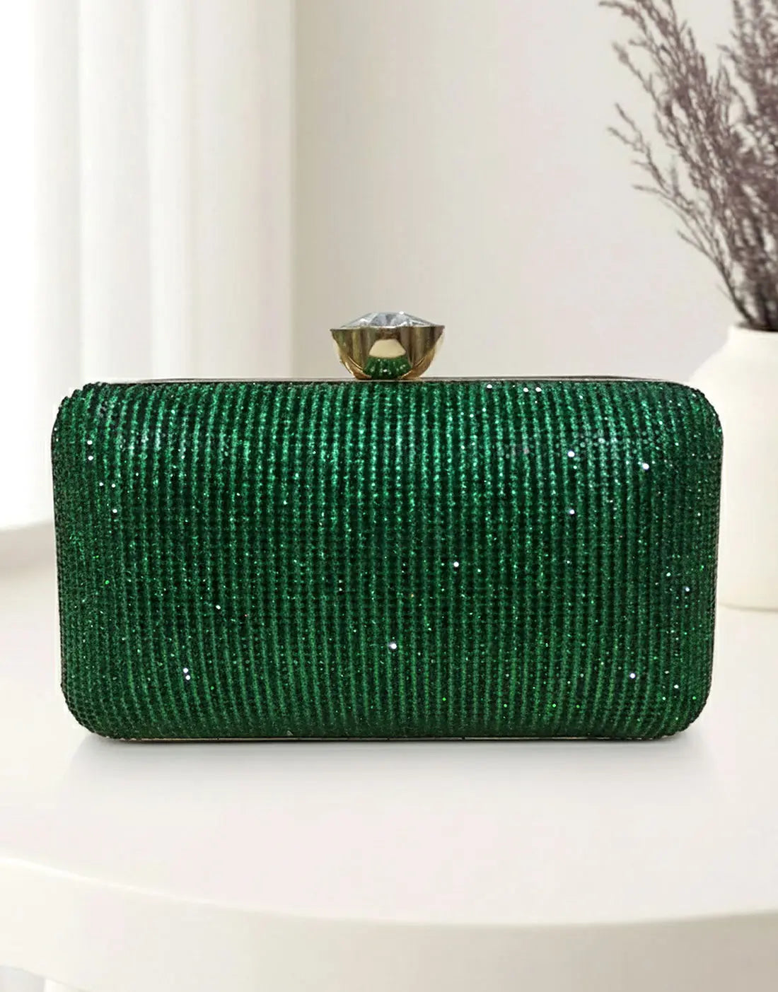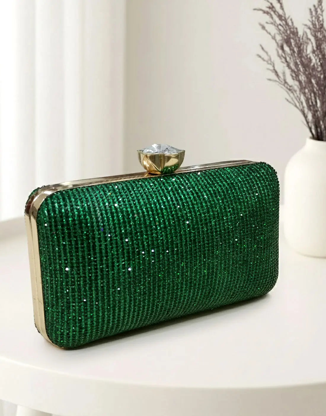 Glitter Emerald Green Diamante Clutch Purse for Formal & Party Wear (DZ18348)