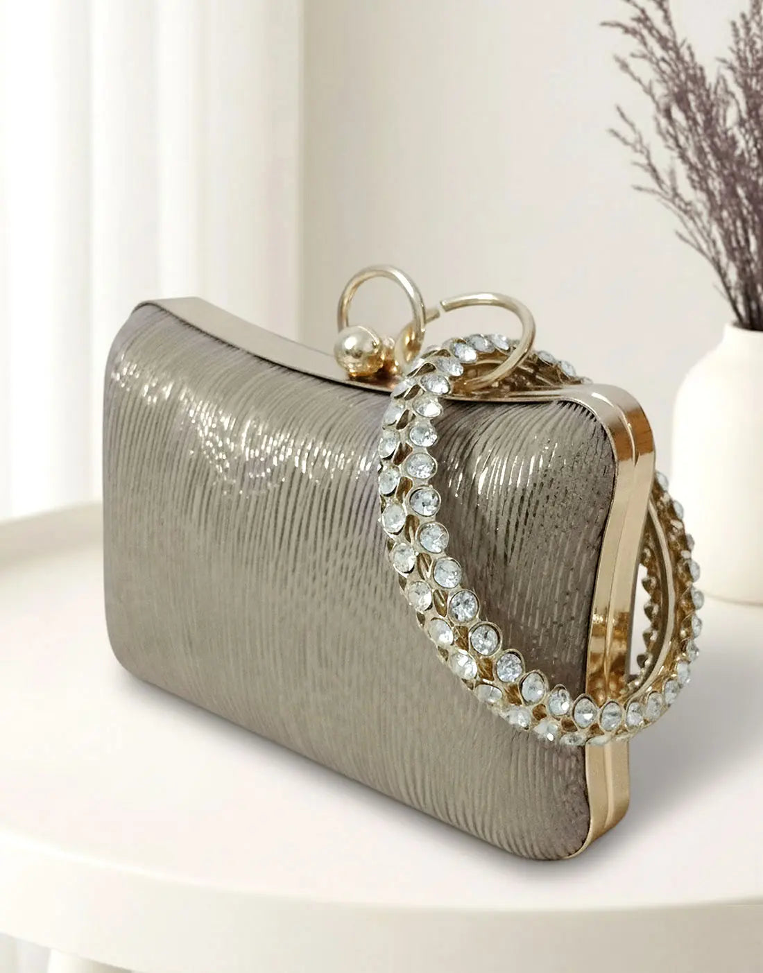 Elegant Light Grey Clutch Purse with Stylish Bangle Handle (DZ18350)