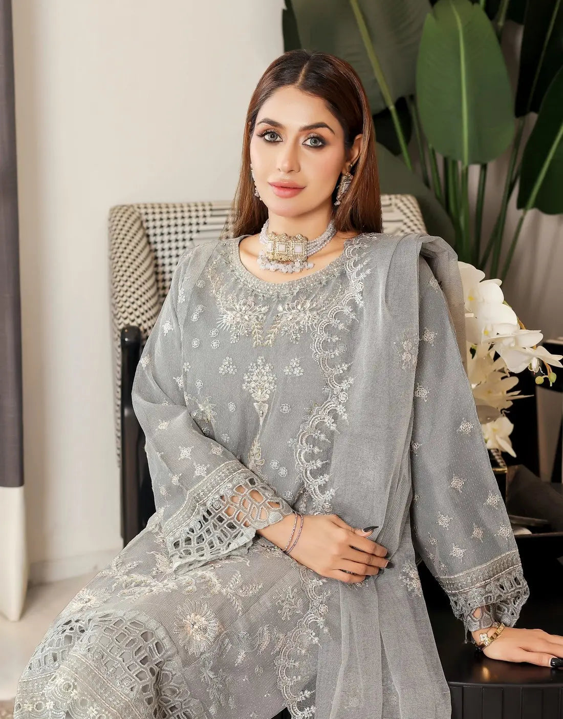 DressyZone.com offers best Carnation Semi-Stitched Embroidered Grey Aiyudiya Net Organza Dress with Monar Dupatta (DZ18703) price in Pakistan with fast shipping countrywide. Buy Carnation Semi-Stitched Embroidered Grey Aiyudiya Net Organza Dress with Monar Dupatta (DZ18703) online and pay cash at the time of order delivery with Free Shipping on all orders over Rs.10,000 in all major cities of Pakistan including Karachi, Lahore, Islamabad, Rawalpindi, Faisalabad, Sialkot, Hyderabad, Peshawar, Quetta and more.