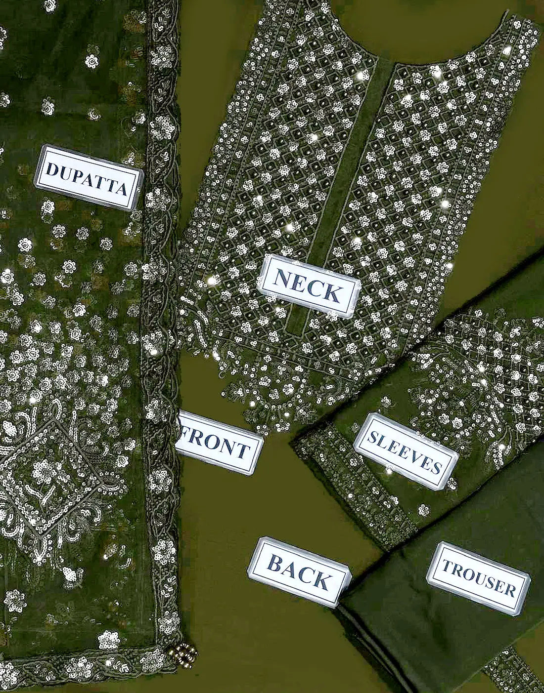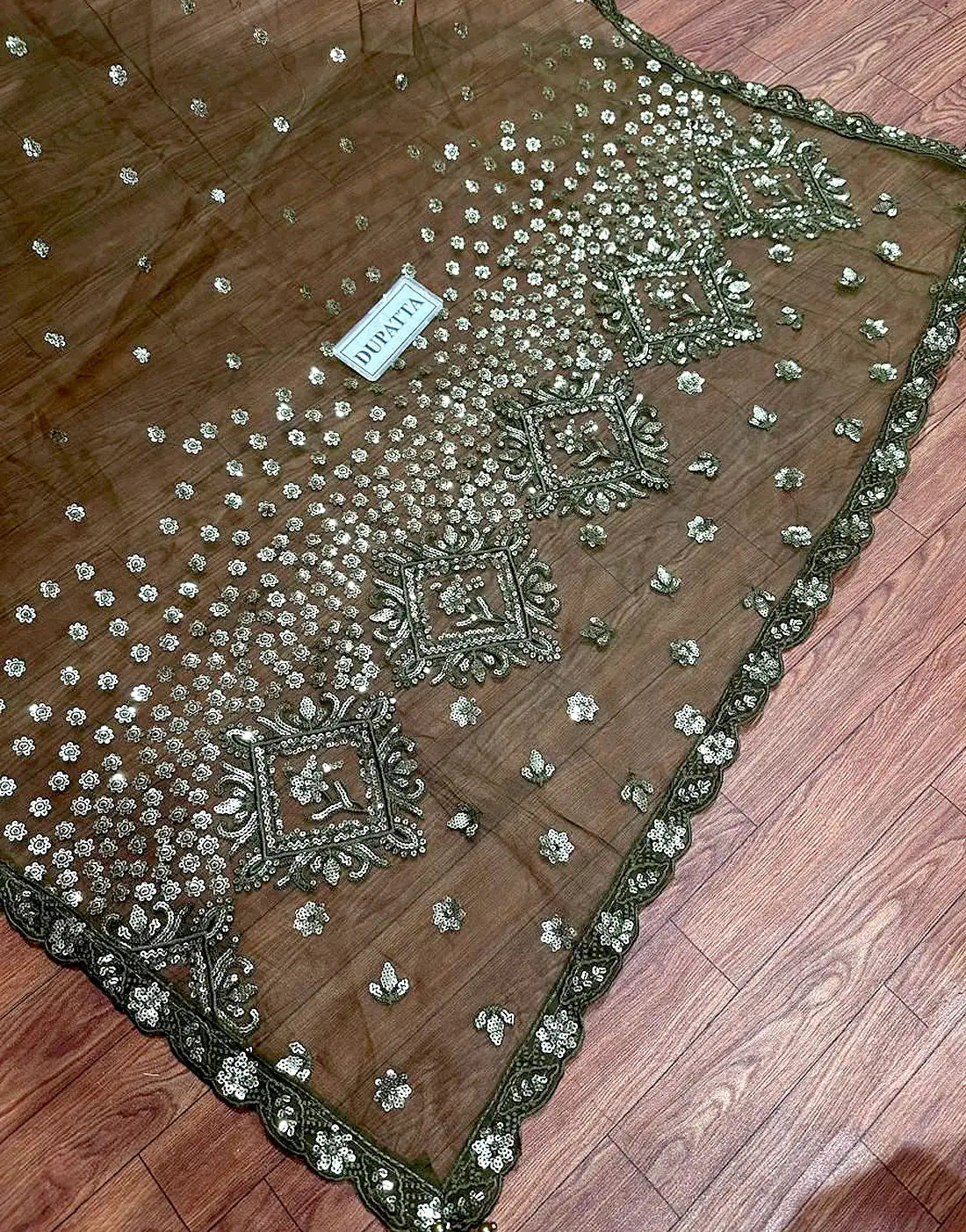 DressyZone.com offers best Graceful Heavy Embroidered Olive Green Mehndi Wedding Dress (DZ18595) price in Pakistan with fast shipping countrywide. Buy Graceful Heavy Embroidered Olive Green Mehndi Wedding Dress (DZ18595) online and pay cash at the time of order delivery with Free Shipping on all orders over Rs.10,000 in all major cities of Pakistan including Karachi, Lahore, Islamabad, Rawalpindi, Faisalabad, Sialkot, Hyderabad, Peshawar, Quetta and more.