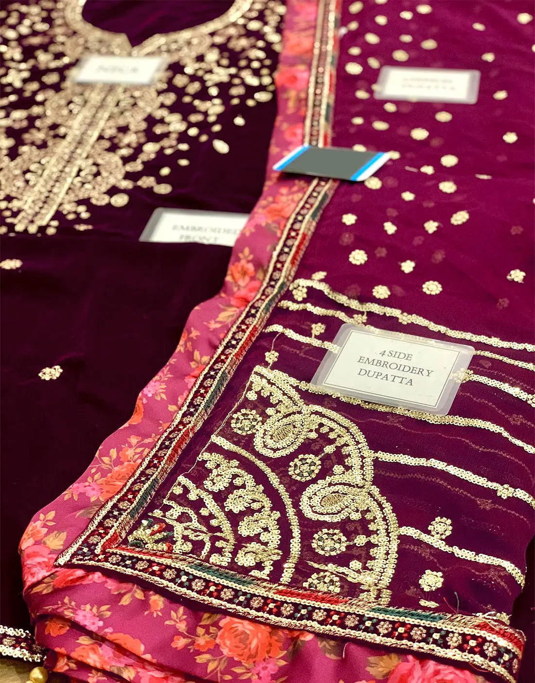 DressyZone.com offers best Premium Heavy Embroidered Dark Magenta Velvet Wedding Dress (DZ18339) price in Pakistan with fast shipping countrywide. Buy Premium Heavy Embroidered Dark Magenta Velvet Wedding Dress (DZ18339) online and pay cash at the time of order delivery with Free Shipping on all orders over Rs.10,000 in all major cities of Pakistan including Karachi, Lahore, Islamabad, Rawalpindi, Faisalabad, Sialkot, Hyderabad, Peshawar, Quetta and more.