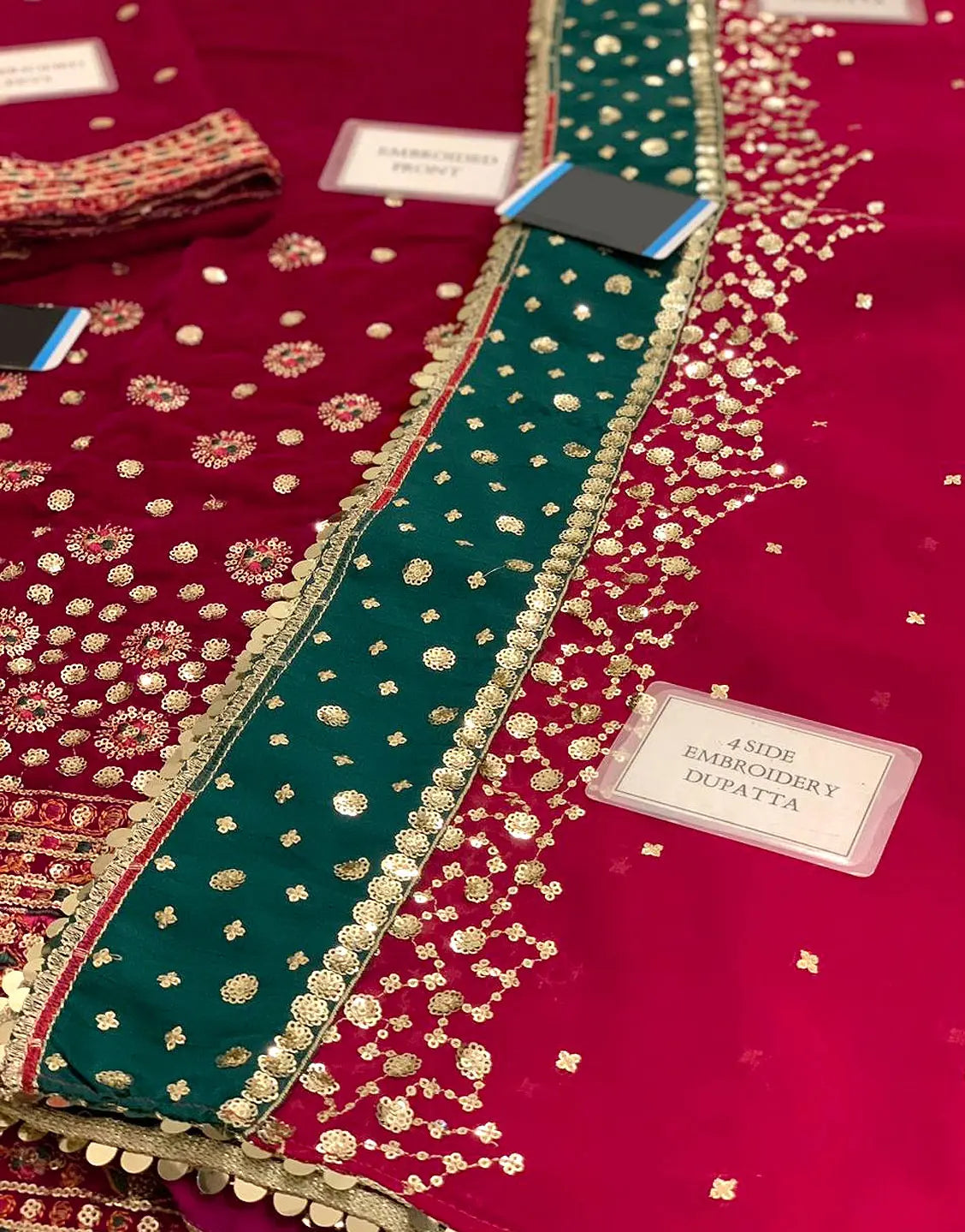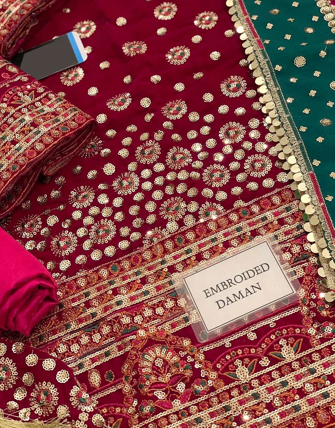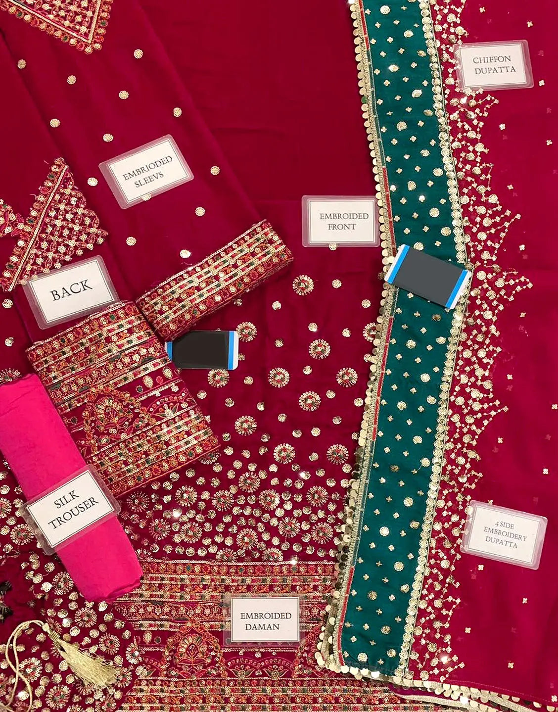 DressyZone.com offers best Luxe Embroidered Ruby Pink Velvet Party Dress with Matching Potli Bag (DZ18255) price in Pakistan with fast shipping countrywide. Buy Luxe Embroidered Ruby Pink Velvet Party Dress with Matching Potli Bag (DZ18255) online and pay cash at the time of order delivery with Free Shipping on all orders over Rs.10,000 in all major cities of Pakistan including Karachi, Lahore, Islamabad, Rawalpindi, Faisalabad, Sialkot, Hyderabad, Peshawar, Quetta and more.