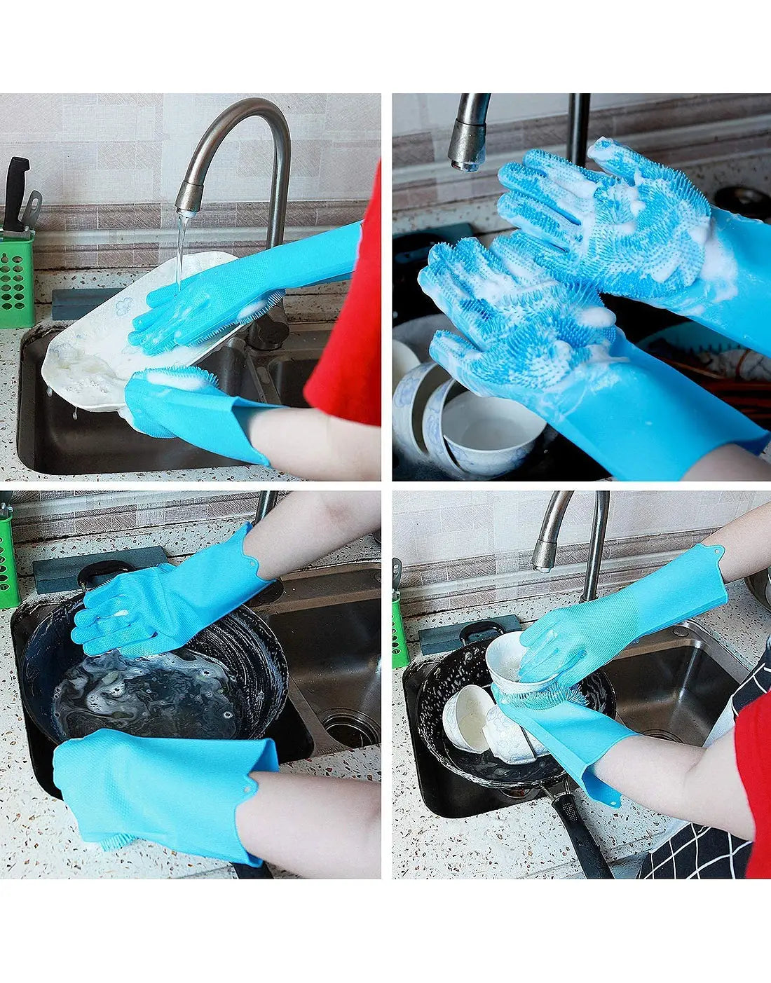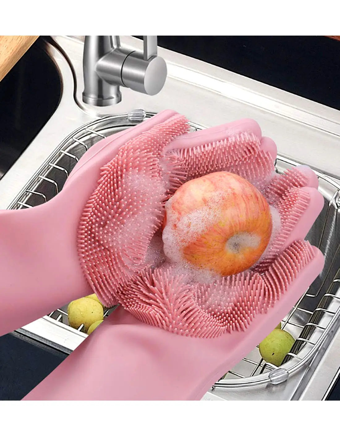 Pair of Silicone Kitchen Dish Washing Gloves (DZ18565)
