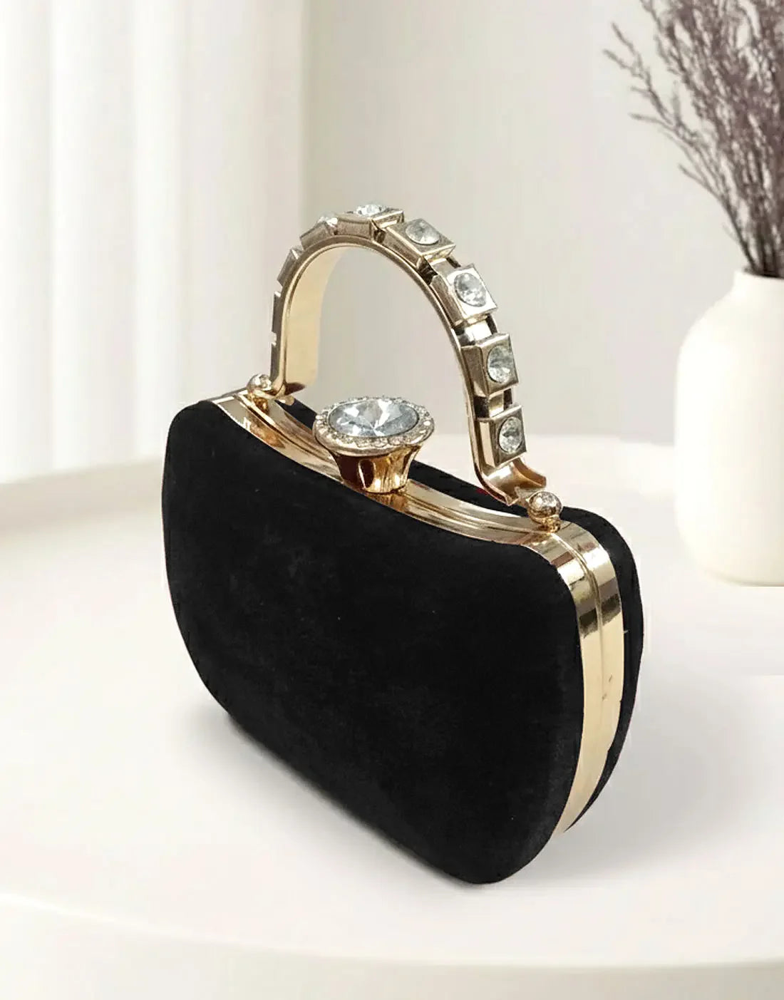 Luxury Black Velvet Bridal Clutch Purse with Stylish Hand Grip (DZ18377)